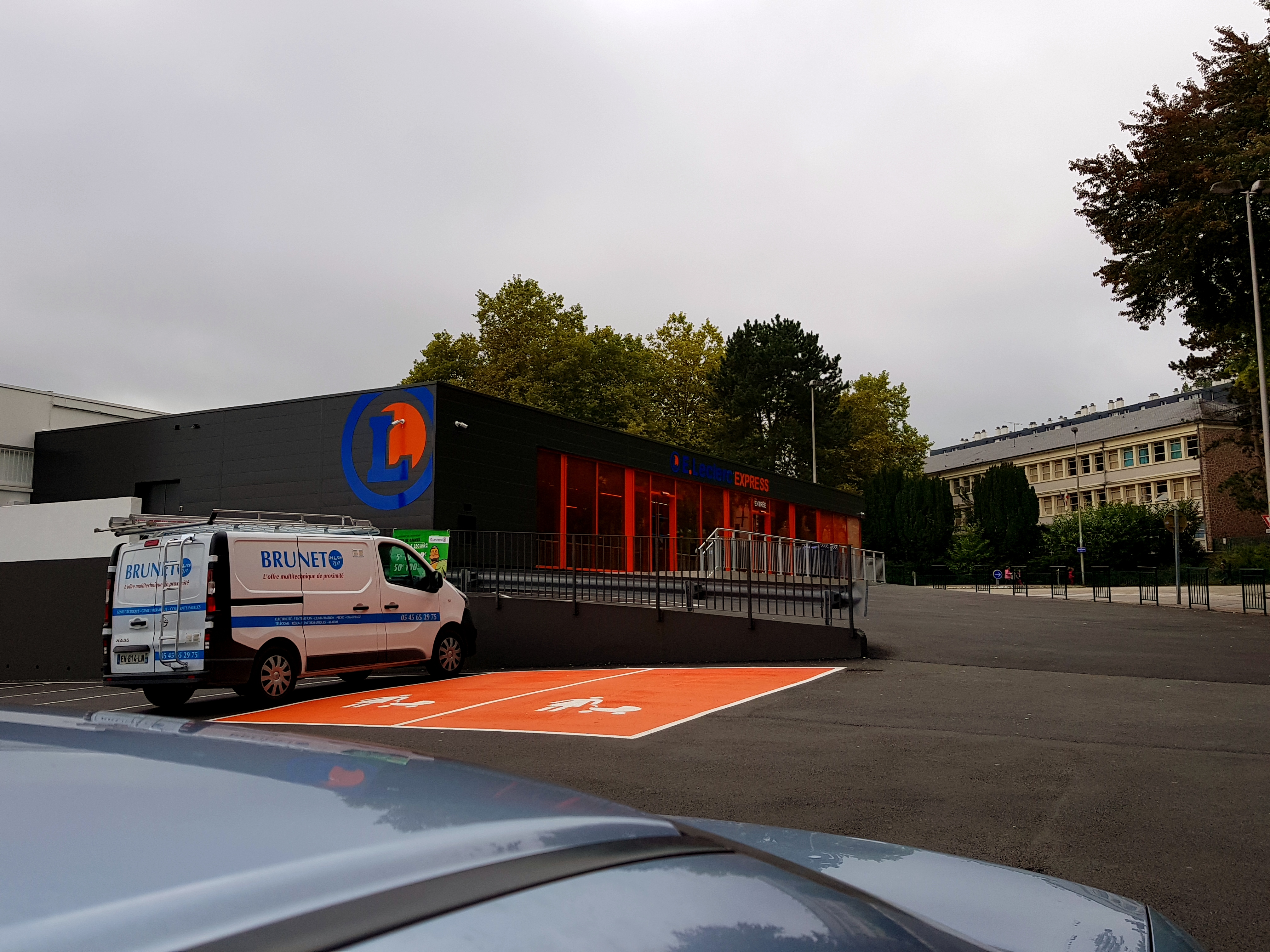 Endroit parfait pour faire des courses rapides, des prix leclerc, parking pratique, accès handicapés.