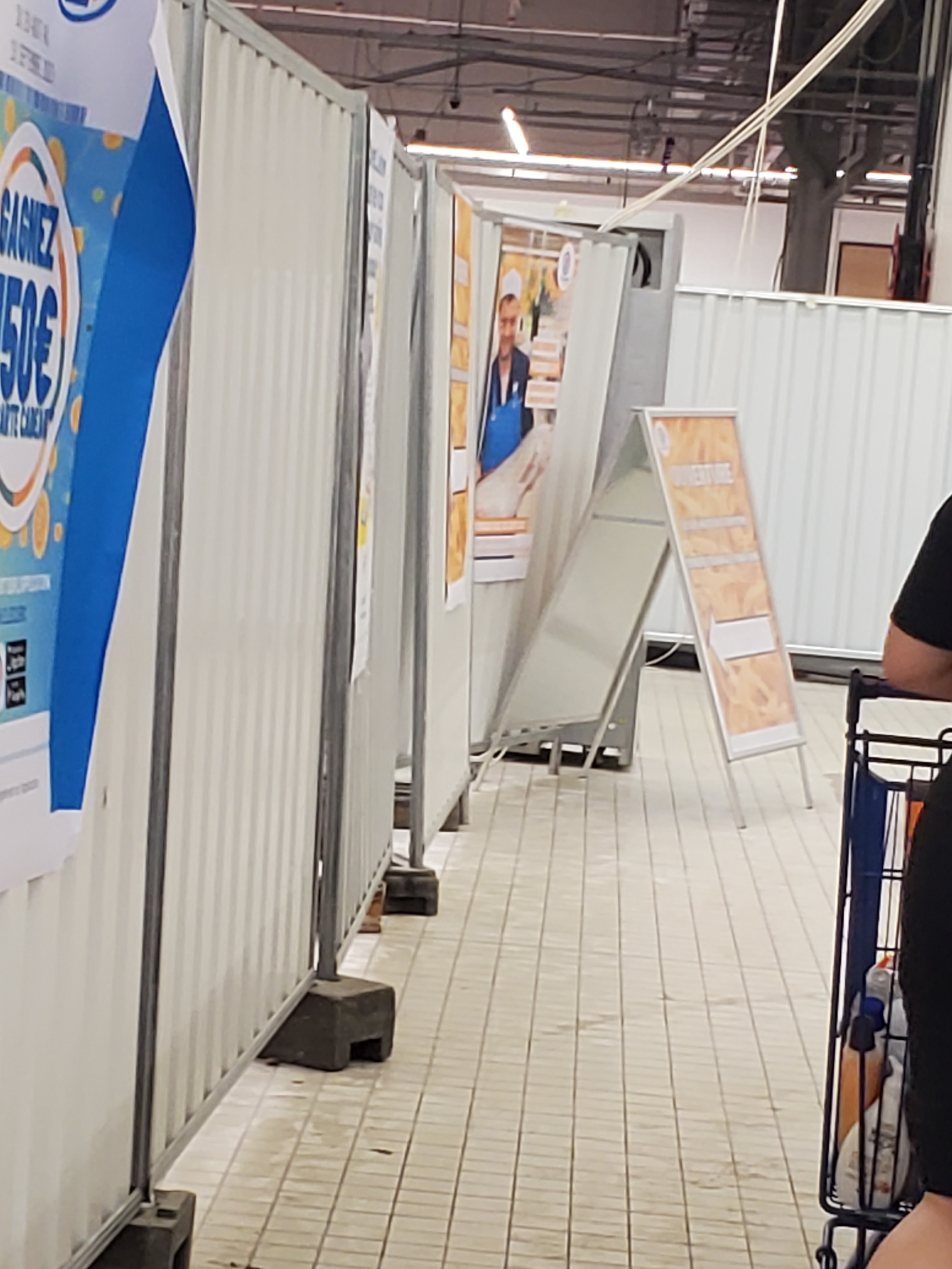 Magasin en travaux mais Tente a ressembler au leclerc Cogolin qui m'a reconcilié avec les hyper leclerc En revanche je sais que les retraités sont mal vus lors des achats surtout handicapes mais rien n'est fait pour nous acceuillir Aucun banc dans la galerie Et les places handicapees st regulierement occupees par des vehicules sans carte ..