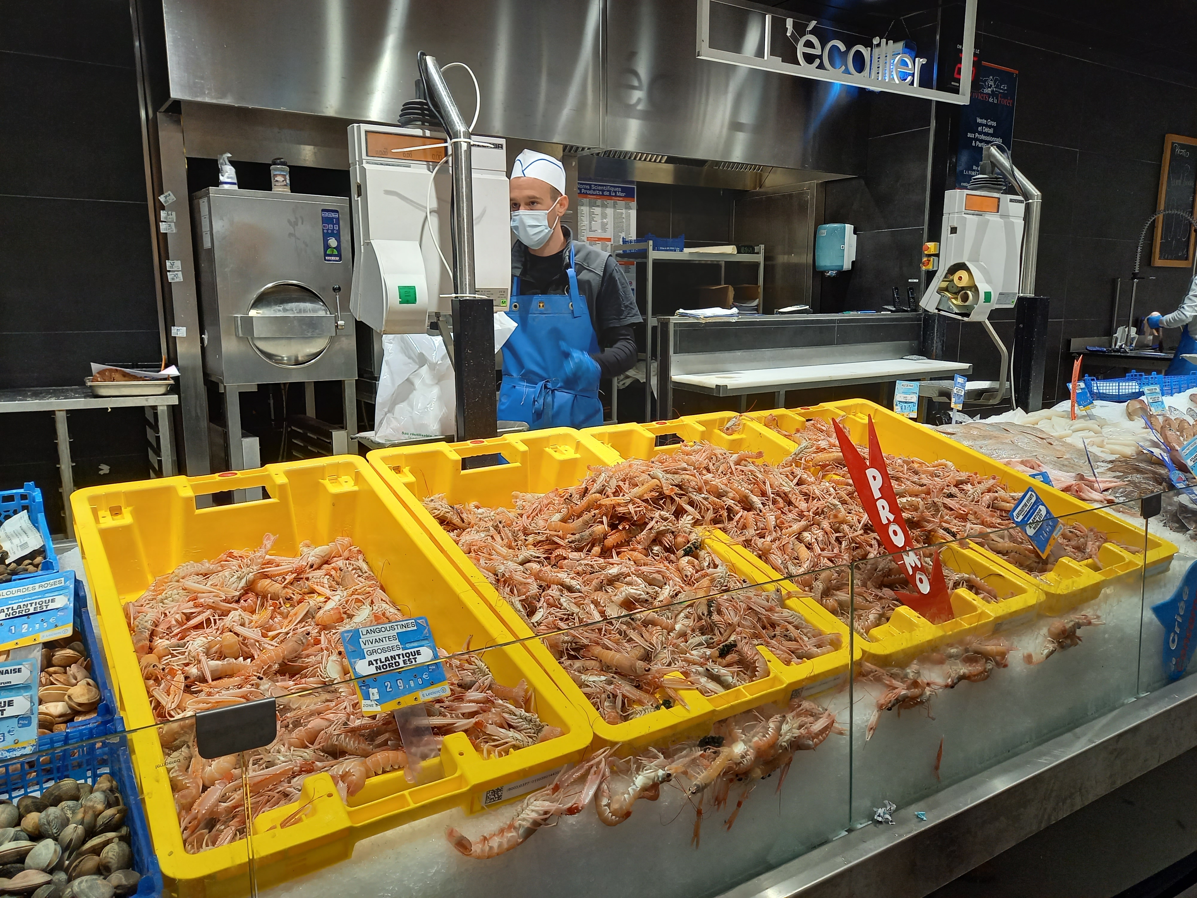 Incroyable ce rayon poissonnerie à des prix imbattables : langoustines vivantes à 9,95 EUR