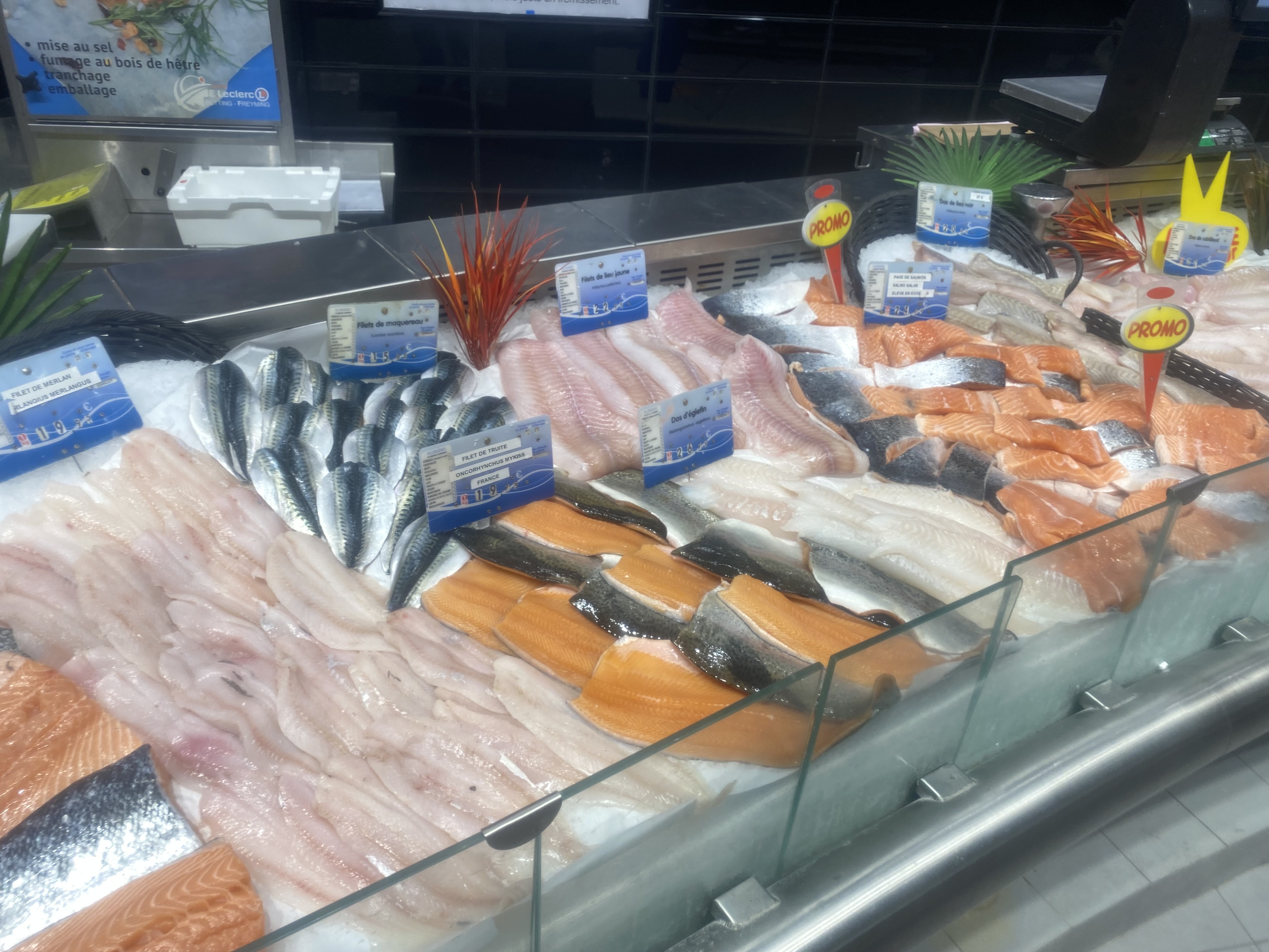 Rayons vides, poissonnerie laisse à désirer, nous sommes samedi et 3 caisses ouvertes, les gens ne sont pas content et râlent, c'est régulier apparemment, nous avons l'habitude de nous rendre à Auchan, nous ne reviendrons plus chez leclerc, en tout cas pas à Betting.