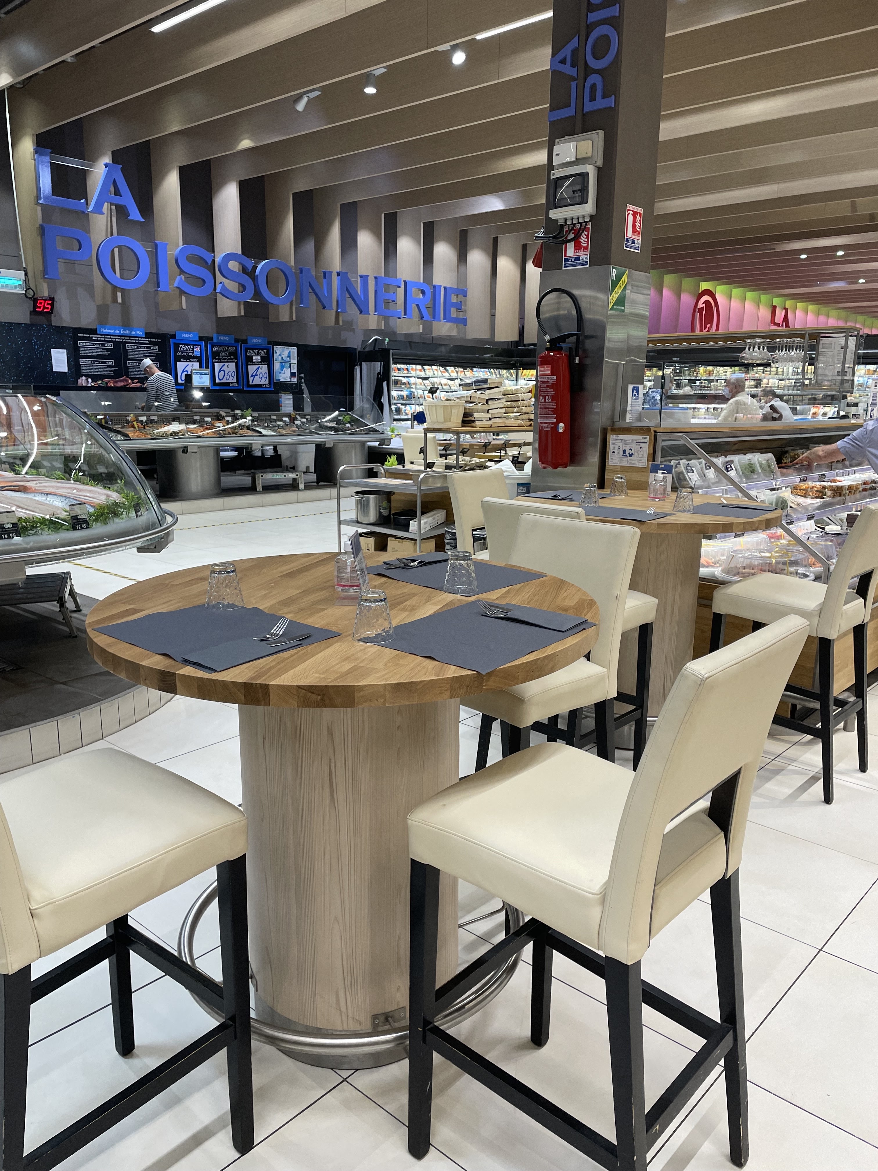 Bonjour, Magasin spacieux, très propre. Je suis venu spécialement pour tester et déjeuner à la poissonnerie. Je ne connaissais pas, et je suis agréablement surpris. Le concept est génial, félicitation ! Ayant mangé des tagliatelles au saumon, le poissonnier à récupérer du saumon, frais de la vitrine pour le préparer sous nos yeux. Petite observation lors de la préparation des produits de qualité et de marque sont utilisés. Félicitations également aux personnels qui occupent le poste de cuisinier et de vendeur en poissonnerie. Je reviendrai avec grand plaisir.