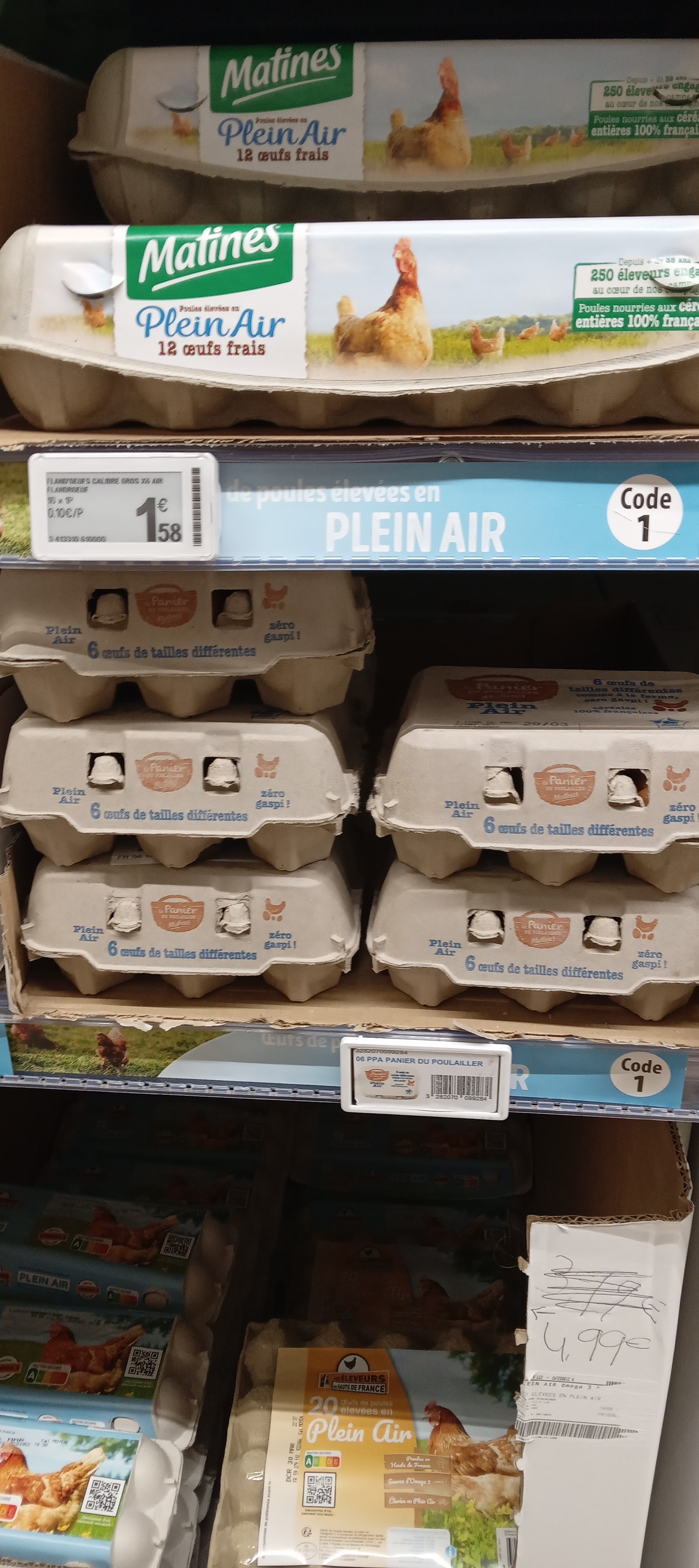 Et voilà suite à votre réponse, mes photos, le prix est bien existant photo 1 boite de 12 oeufs a 1.58 passée a plus de 3e, et qd vous demandez le prix a l'els mindique la borne a plus de 20 m qd on voit le nombre d'étiquettes manquantes j'ai de quoi y passer 10 mn et verifier les prix: est-ce normal? il est erroné et non inconnu. Vous ne reconnaissez pas vos erreurs. Concernant la caisse rapide, elle se trouvait fermée ce matin à 9h14, ne me dites pas que c'était ouvert ou sinon prouvez moi le contraire, c'est plutôt simple, c'est de l'informatique. Vos caisses rapides sont très fréquemment fermées et donc nous passons un temps fou aux caisses généralement le matin de bonheur. Ce supermarché leclerc manque d'organisation, le personnel est plutôt agréable exceptée qq personnes qui mériteraient une formation sur le service client, pb de prix récurrents, pb de fraicheur, articles animalerie qui se trouvent sur deux rayons a 40 m de distance, bref du grand nimporte quoi. Il faut absolument qu'il soit repris par des personnes compétentes , agréables et honnêtes: je n'ai pas apprécié votre réponse ce matin, et j'attends des excuses