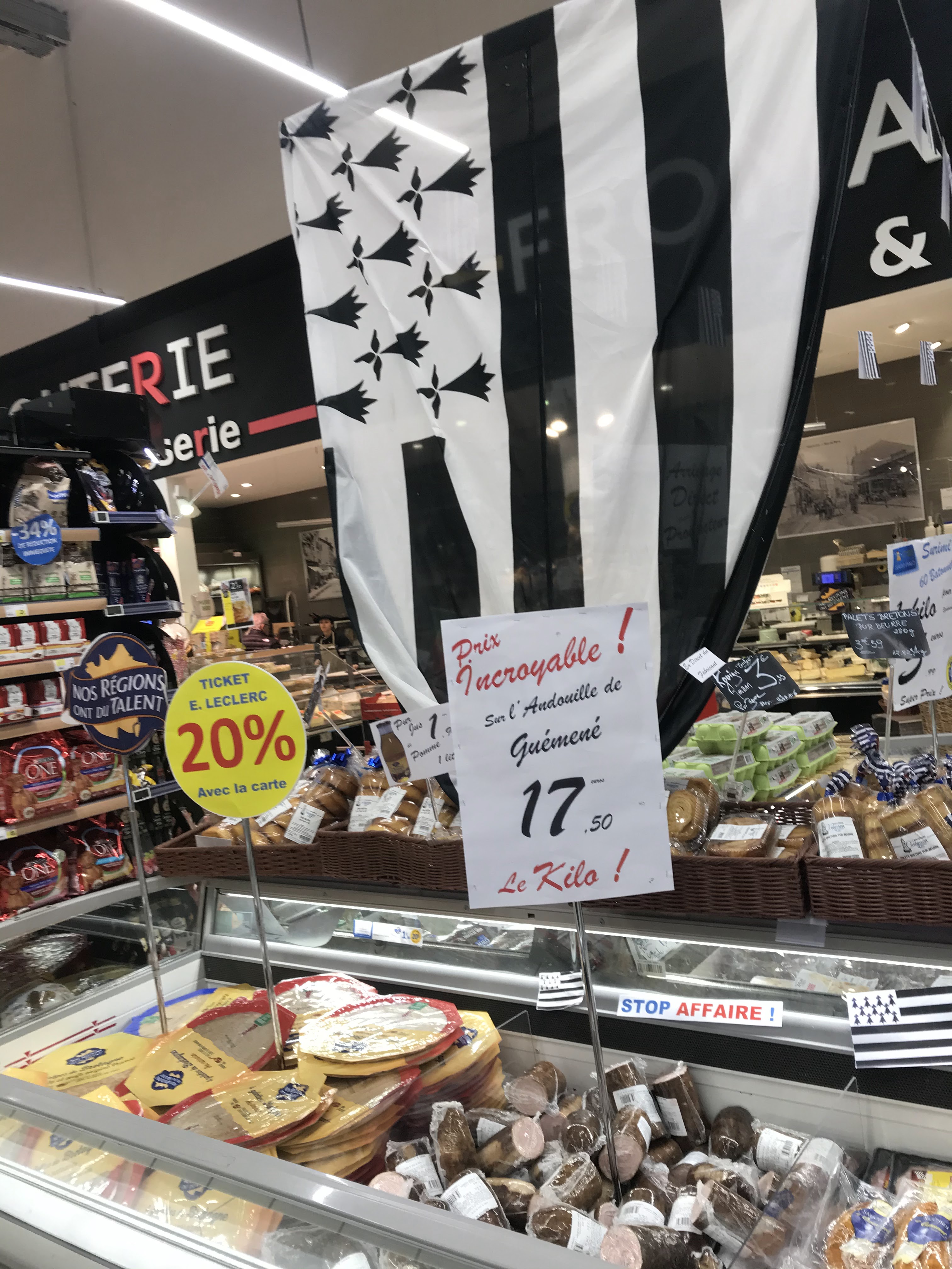 De passage dans le coin, j’ai profité pour faire deux-trois courses au sein de ce Leclerc. Les prix me semblent tout de même plus chers que les Leclerc que j’ai l’habitude de faire. Les rayons ne sont pas forcément logiques, bien qu’il y ait des grand titres sur les murs.