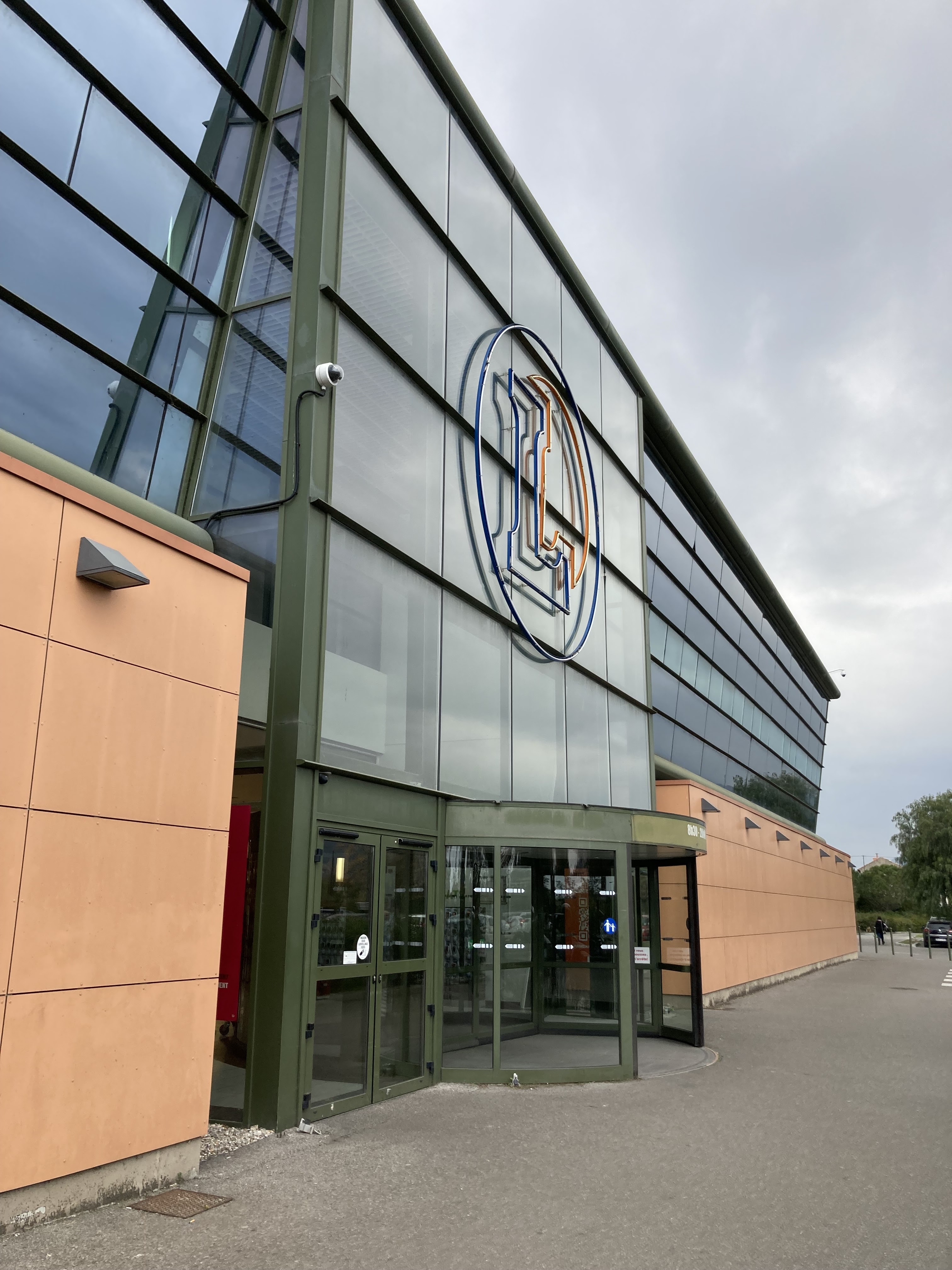 Une belle architecture de face en verre pour cet hypermarché. Le rayon des vins et des whisky est très intéressant.....quelques vins d'exception, de fameux propriétaires de domaines sont présentés sur les étiquettes pour ma plus grande joie. Une belle représentation de whiskies pour certains connaisseurs sont disponibles: une bonne note.
