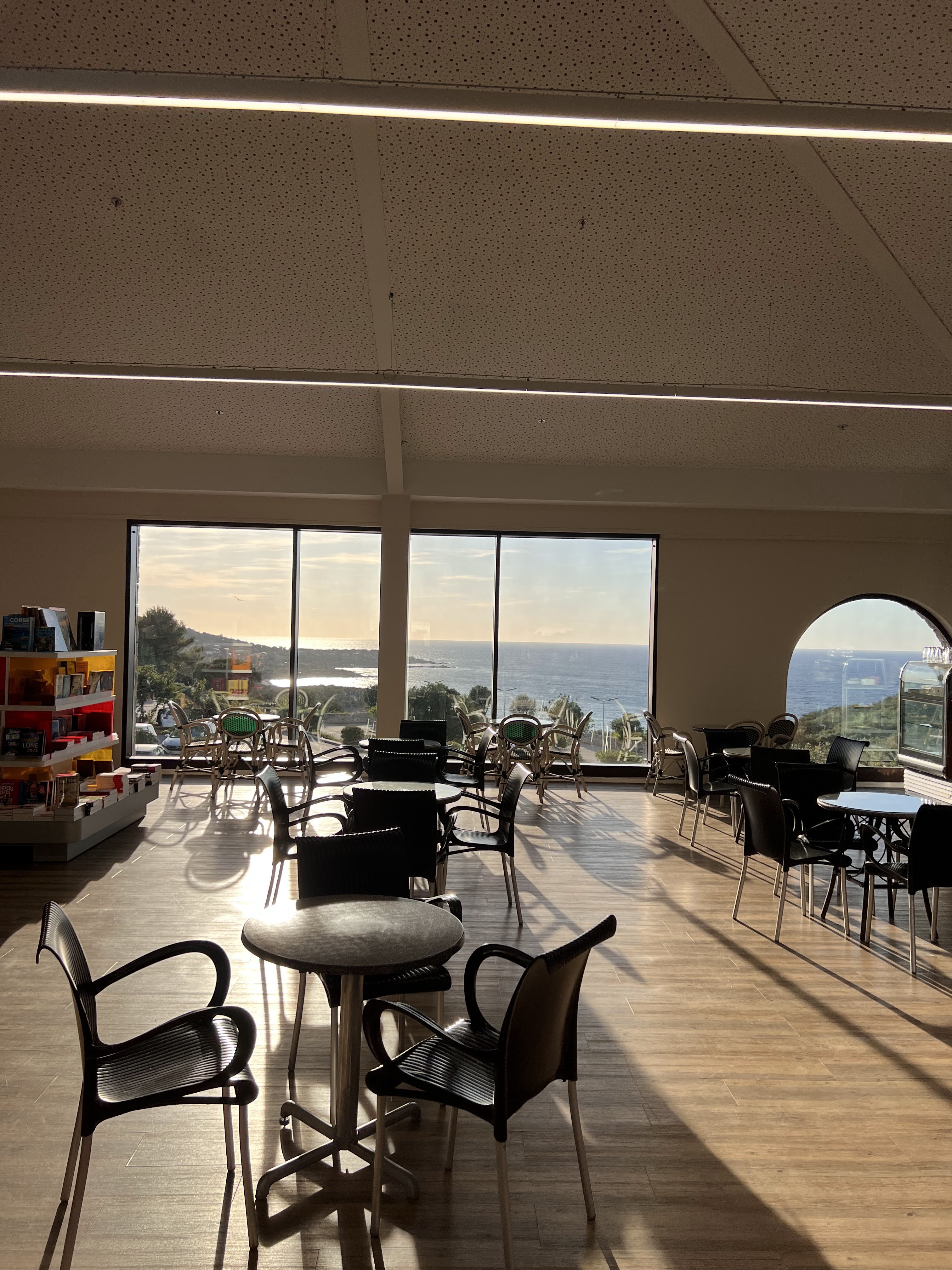 Magasin propre, et aéré. Une vue de la terrasse du bar sensationnelle.
