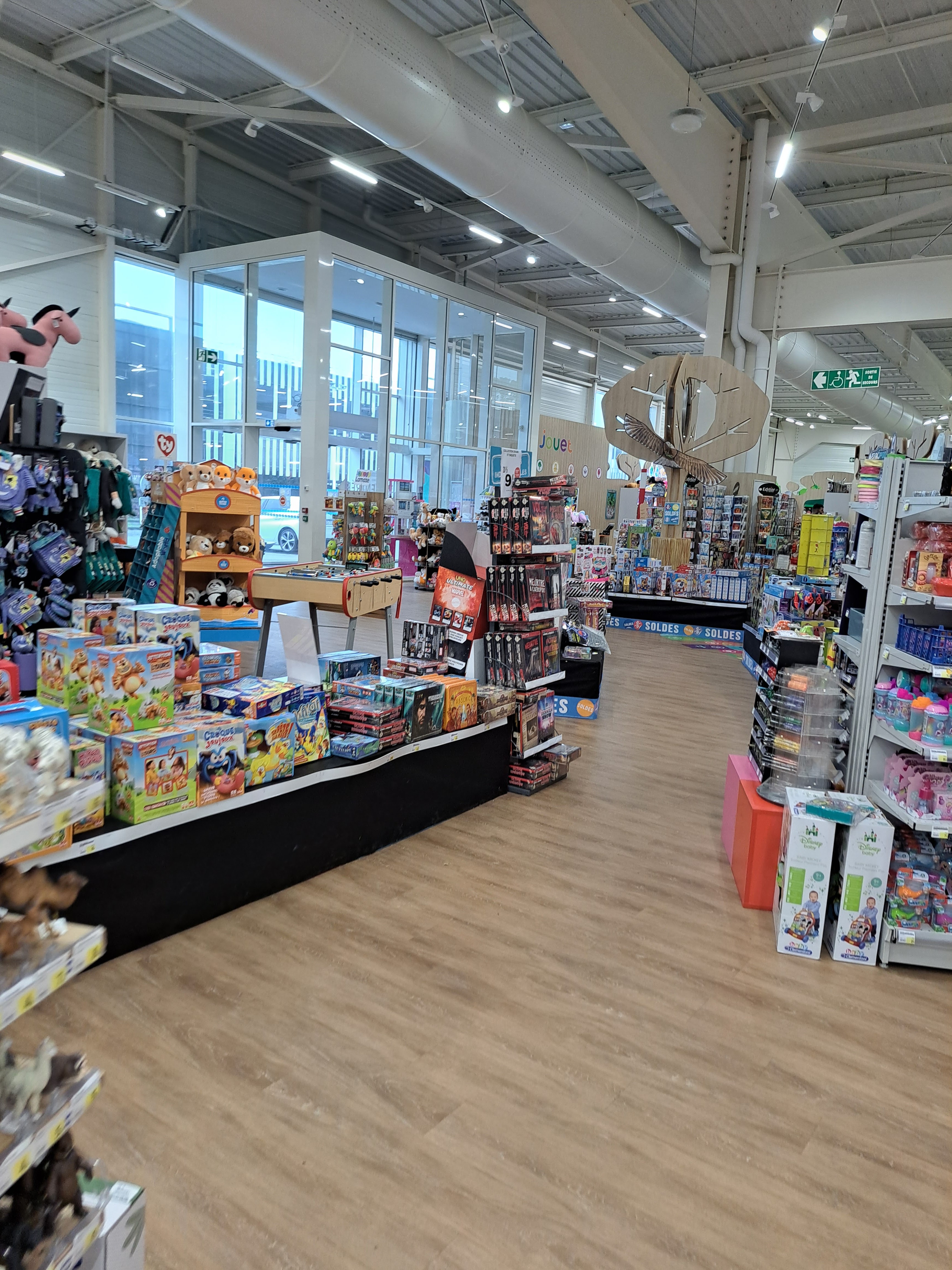 Vaste espace consacré aux jouets et jeux pour toute la famille, beaucoup de choix avec des prix corrects.