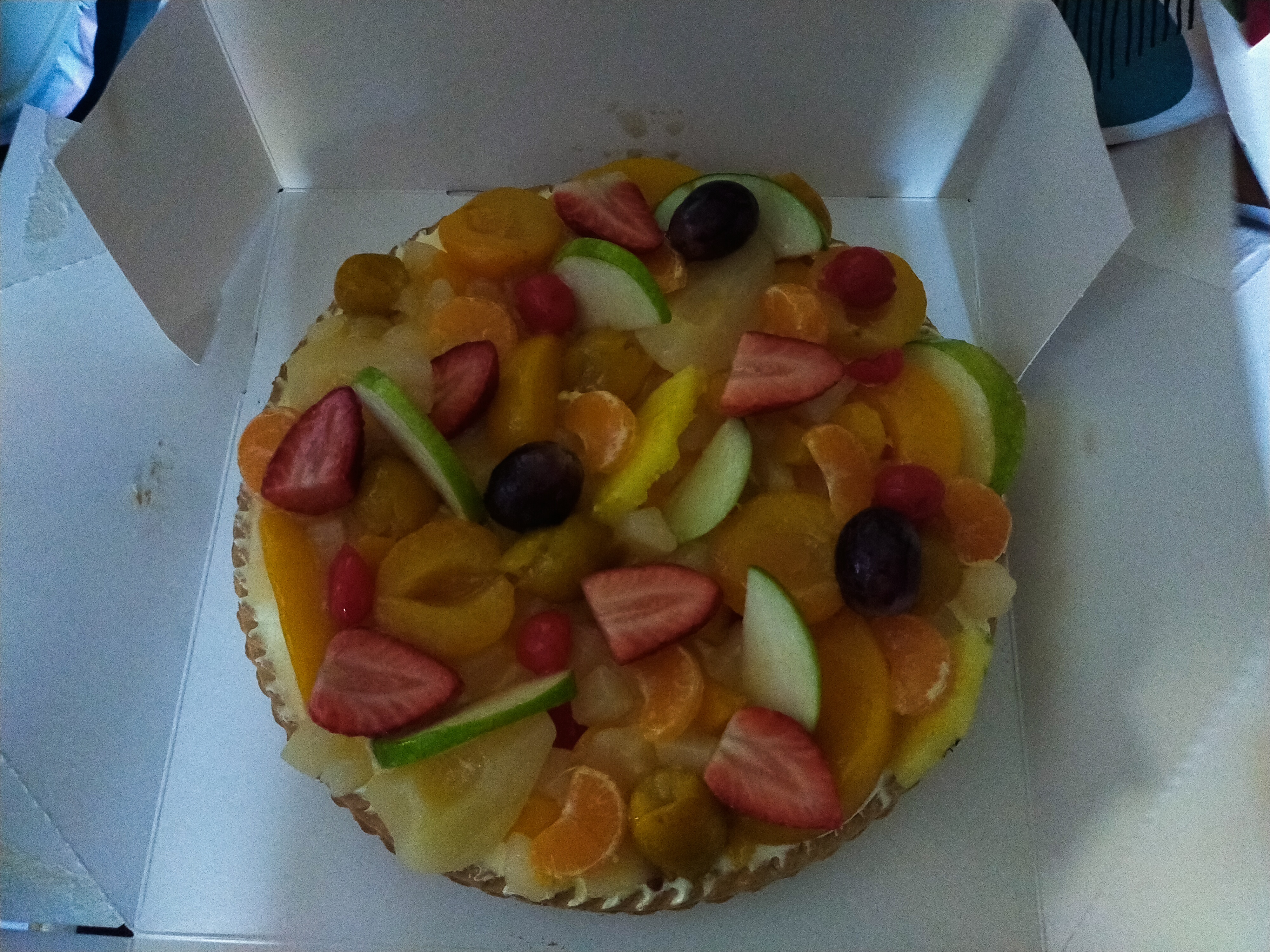 Commande d'une tarte AUX FRUITS FRAIS. Très jolie tarte reçue ( faut pas se mentir) aux fruits AU SIROP. LA FACTURE SPECIFIE FRUITS FRAIS... Hyper déçue. J'appelle le rayon concerne. Le pâtissier me dit: si c'est pas écrit, je fais pas, il y a toujours une base de fruits au sirop... Alors sur une tarte de 10/12 parts, il y a 4 grain de raisin, 5 fraises, 1/2 pomme fraîche et une Clémentine. On est donc loin de la base de fruits au sirop... On est plutôt sur une déco fruits frais.... Je suis EXTRÊMEMENT EN COLÈRE. Et la dame qui a pris notre commande, se dédouane et dit je me souviens vaguement d'une dame qui est venue Alors oui, on m'a proposé de le refaire, il aurait fallut que je plante mes invités en plein repas... Que je fasse 20 minutes de route entre min domicile et le centre commercial, puis que je patiente le temps de réfection, puis ré 20 min de route ... Donc planter mes invités 1h. Génial. Et sinon, faire ce qui est demandé et convenu dès le départ, est-ce que c'est une option envisageable ? Oui, le produit a été consommé... On ne commande pas deux gâteau de 10/12 personnes pour les regarder dans le frigo.... Alors me satisfaire... Merci...