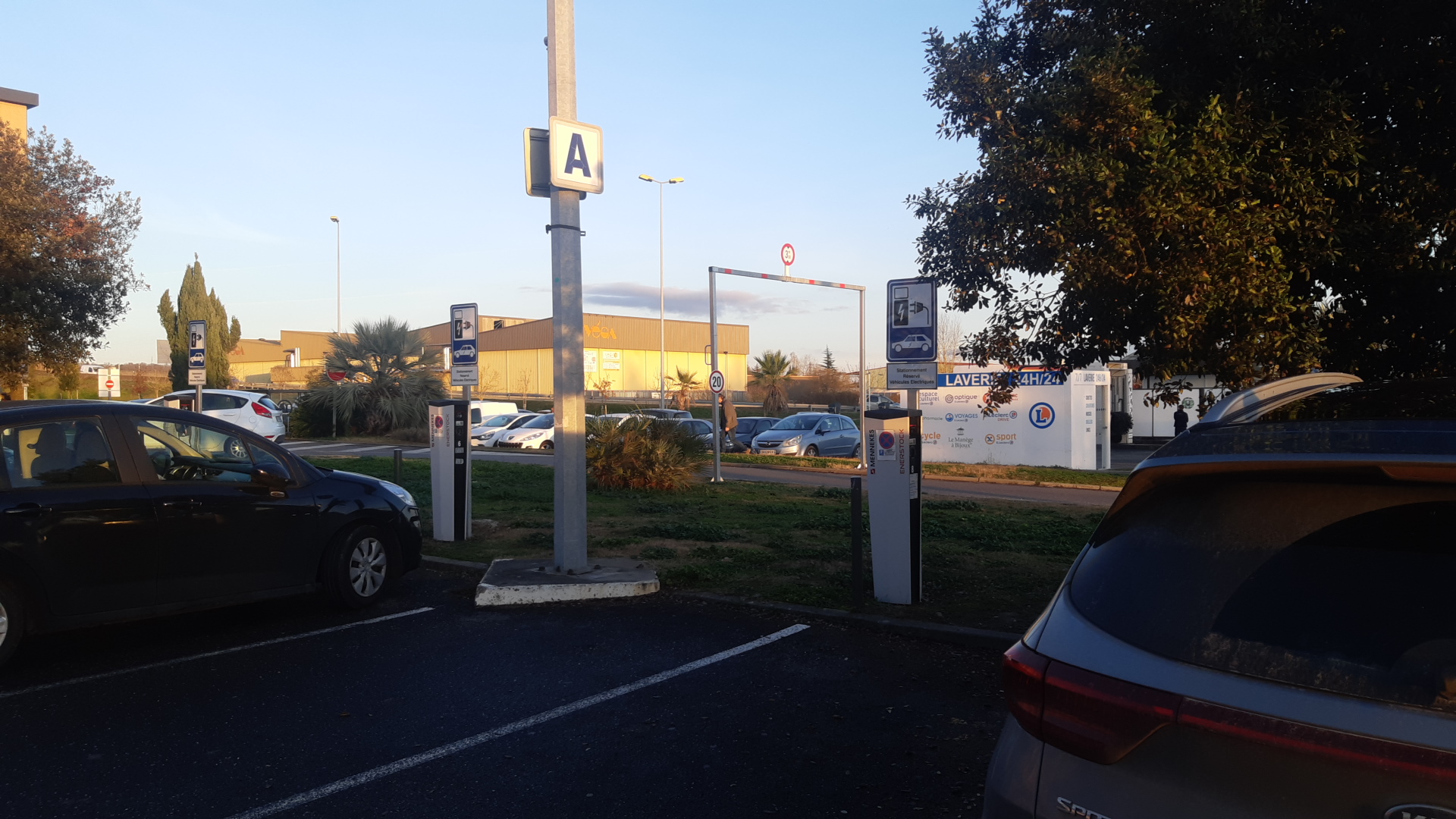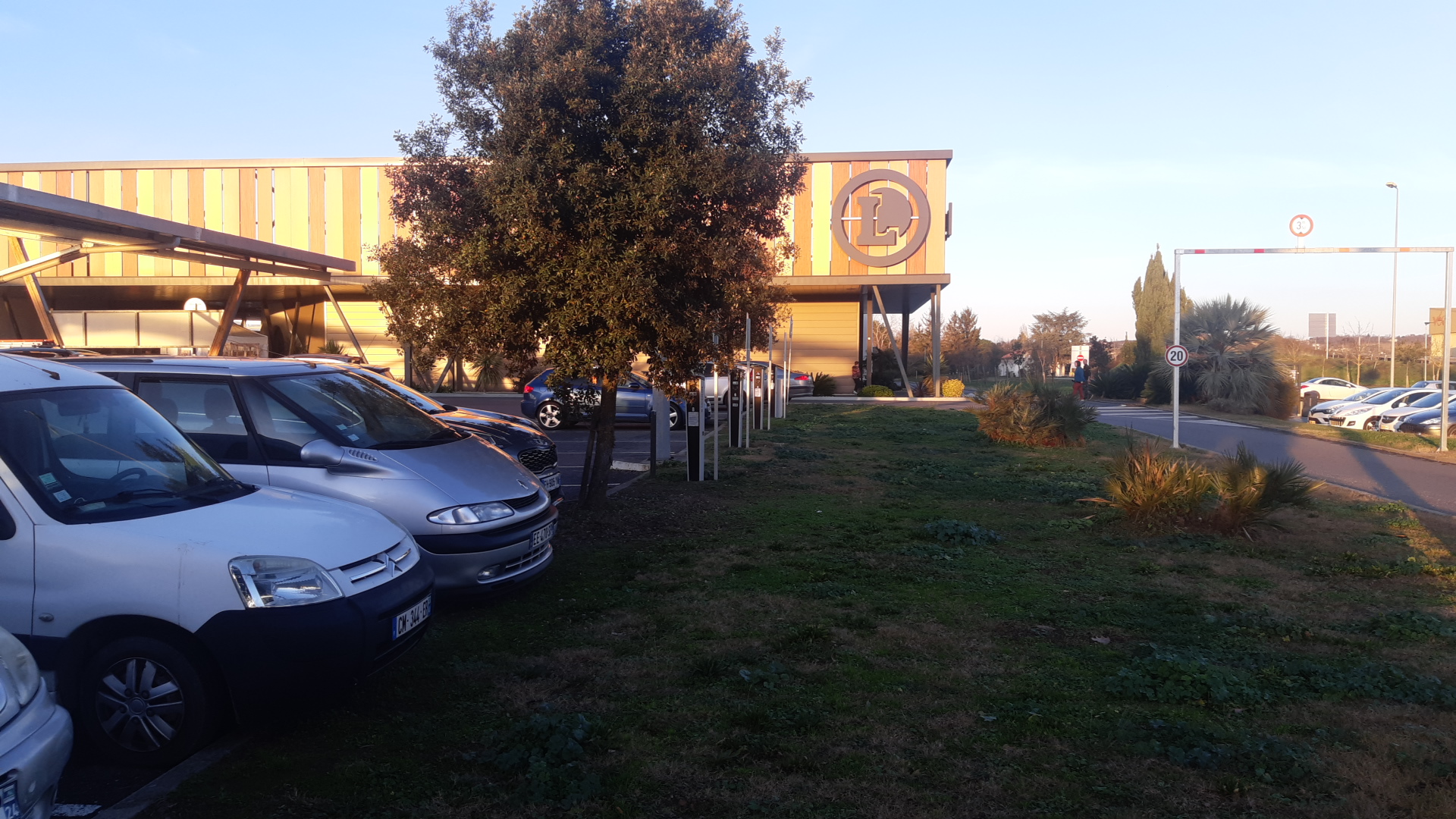 Un Leclerc accessible. Dommage que les panneaux solaires pouvant également abriter ne soient pas présents.