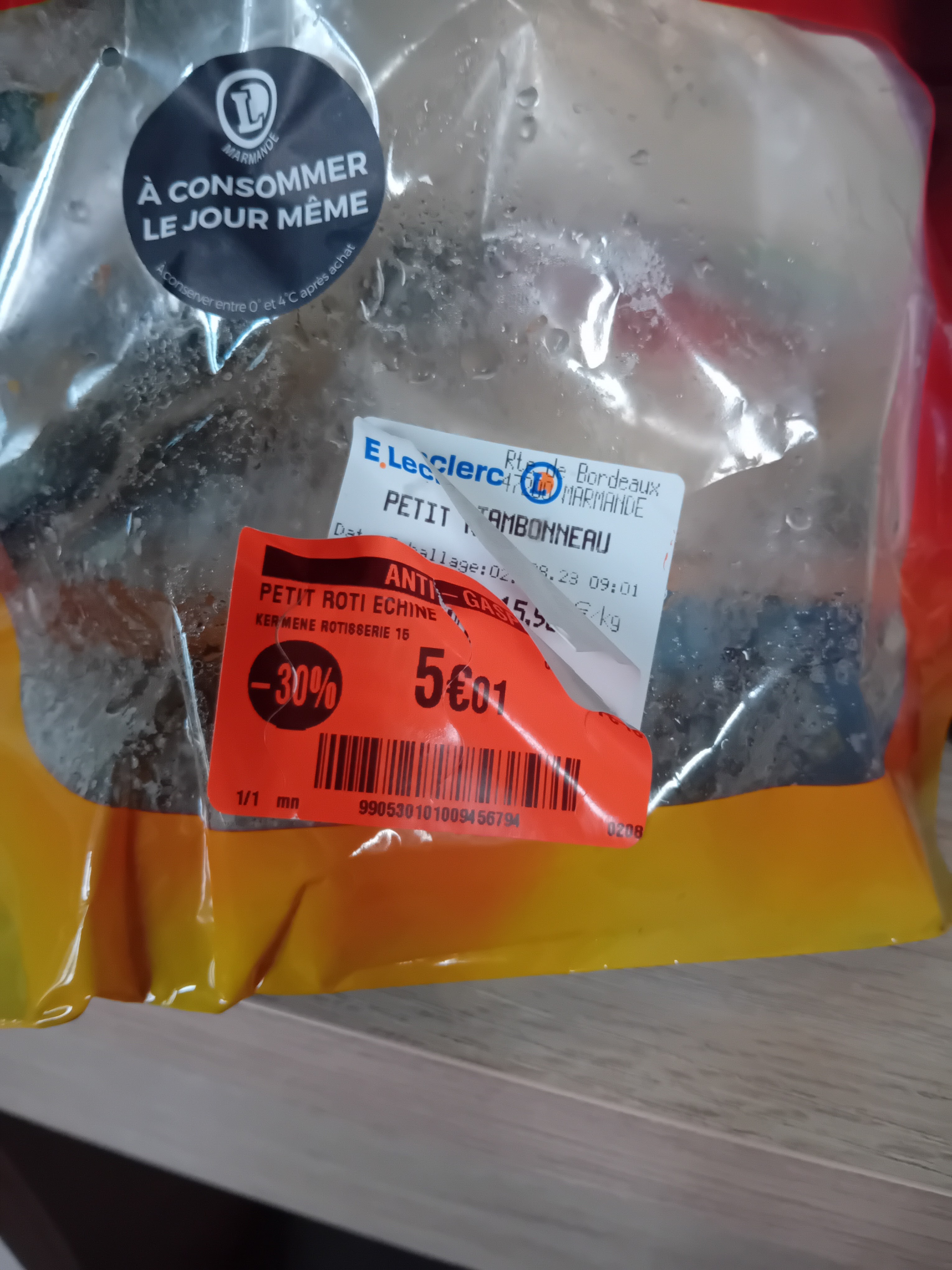 Acheté une quiche Gersoise à 6,99€ pour manger que des œufs très moyen 😔😔😔😔de plus achat basse soit disant emballé le jour même mais quand on sent l'odeur du bout de barbaque franchement il faudrai que les services de l'hygiène passe pour remettre les chose au clair !!!!!! 😡😡😡😡😡après leclerc lutte pour le pouvoir d'achat de ces clients là c'est vraiment abusé