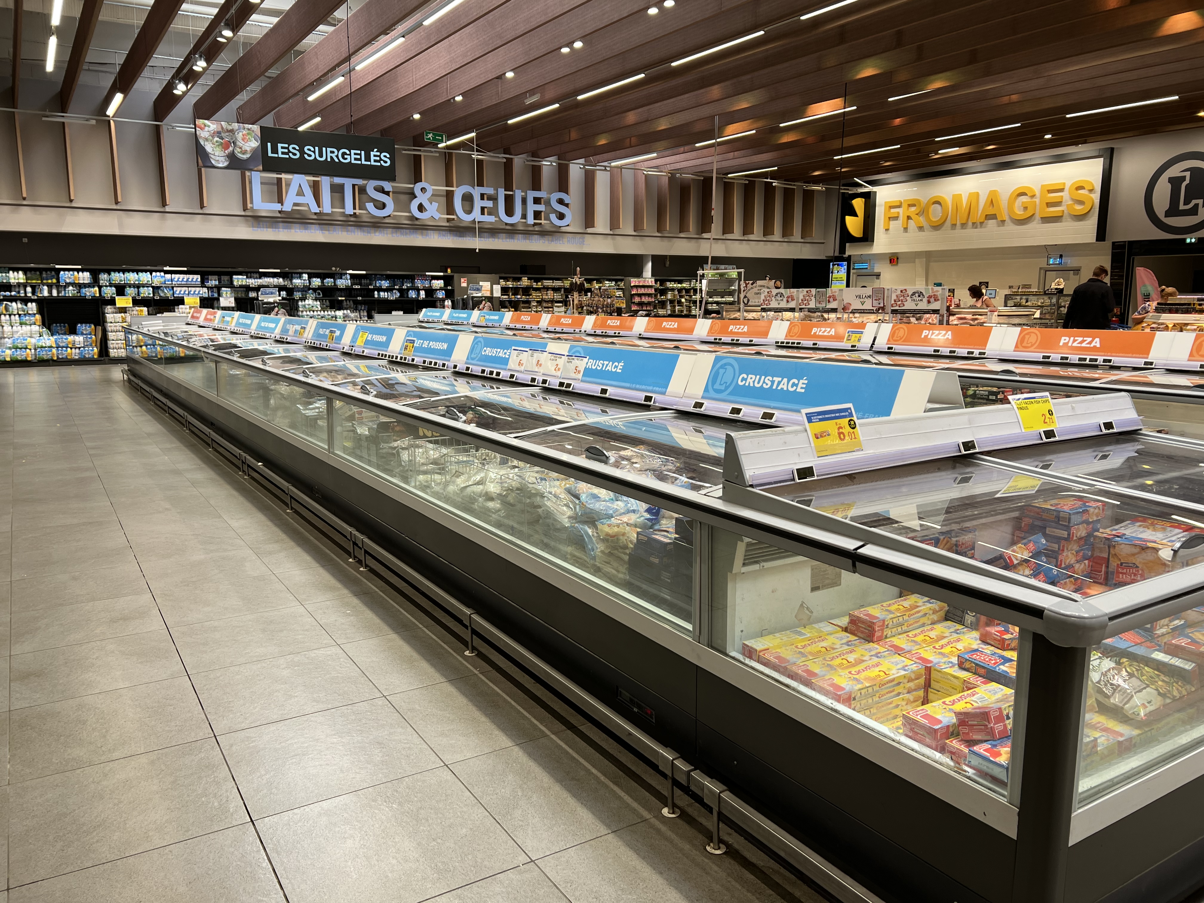 Grand supermarché avec notamment un grand rayon poissonnerie et boucherie