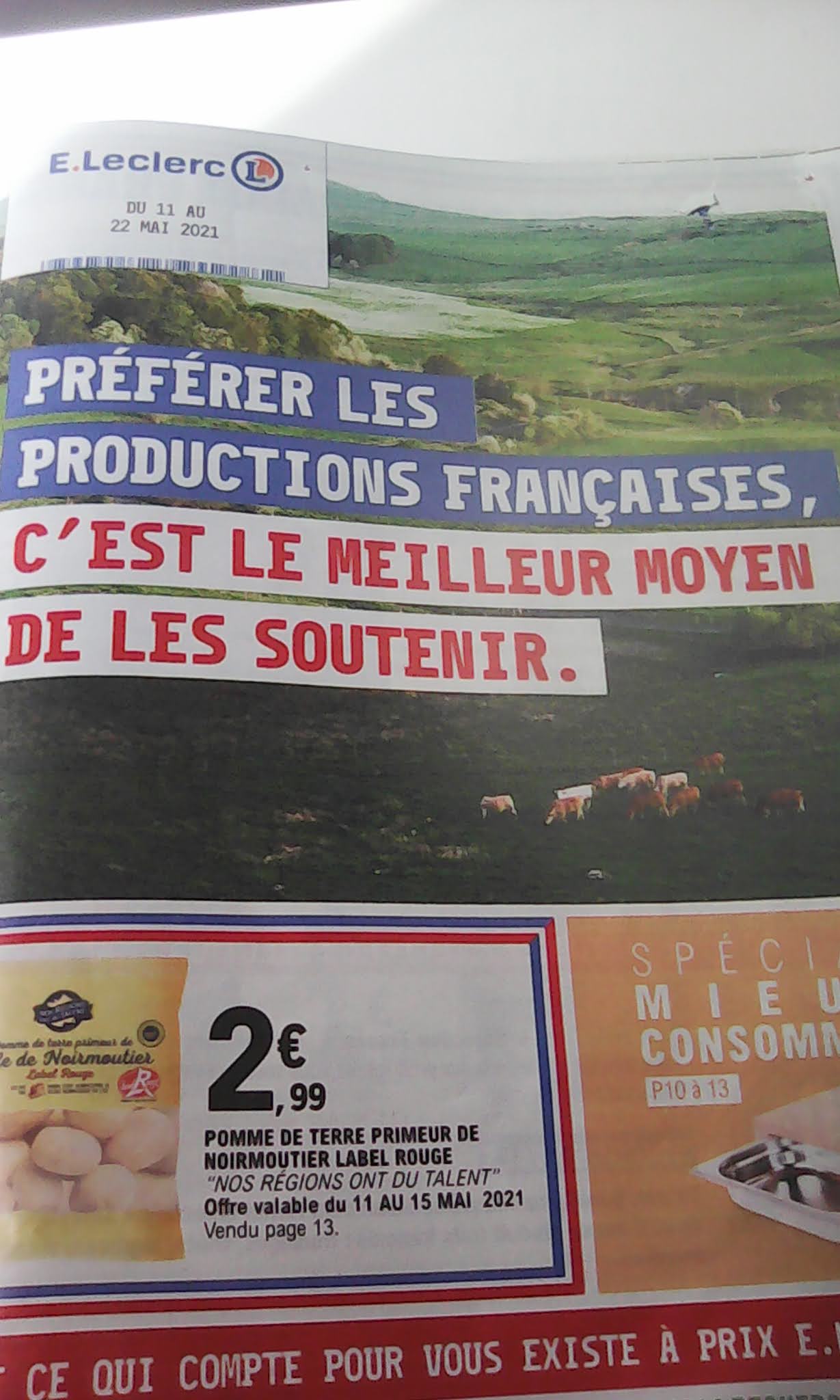 Bonjour, je suis passé 3fois concernant le prospectus préférer les productions françaises , c'est le meilleur moyen des les soutenir afin d acheter le panier pique nique isotherme 4 personnes à 34,90 Euros page 29 du catalogue en promo du 11/05 jusqu' au 22/05/2021. J'ai été baladé de rayon en rayon pour finalement entendre lors de mon appel téléphonique du 18/05/2021 à 17h03, qu il y en n avait plus et que cela était compliqué d'avoir le produit qui vient de CHINE....... le catalogue parle de production locale..... Que des mensonges ce catalogues et surtout pas de produit sur le Leclerc de Pont château. Aucune solution de proposée par la chef de rayon car la promo se termine le 22/05 et nous sommes le 18/05 ????? comment esquiver, partir pour échapper à une difficulté. A fuir comme magasin.