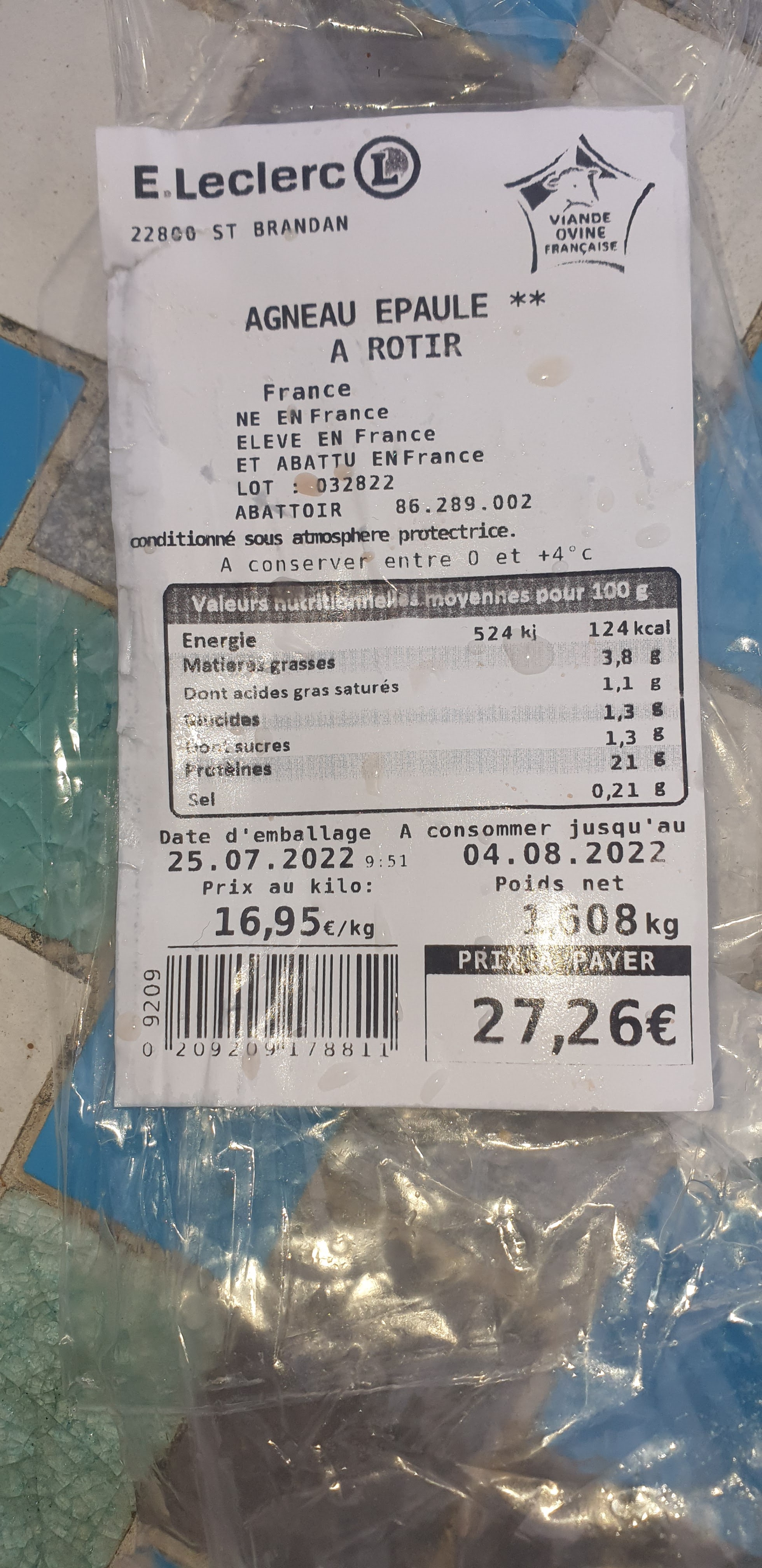 A éviter fortement pour les produits frais Epaule d'agneau DLC au 4 août incuisinable le 31 juillet tellement elle puait