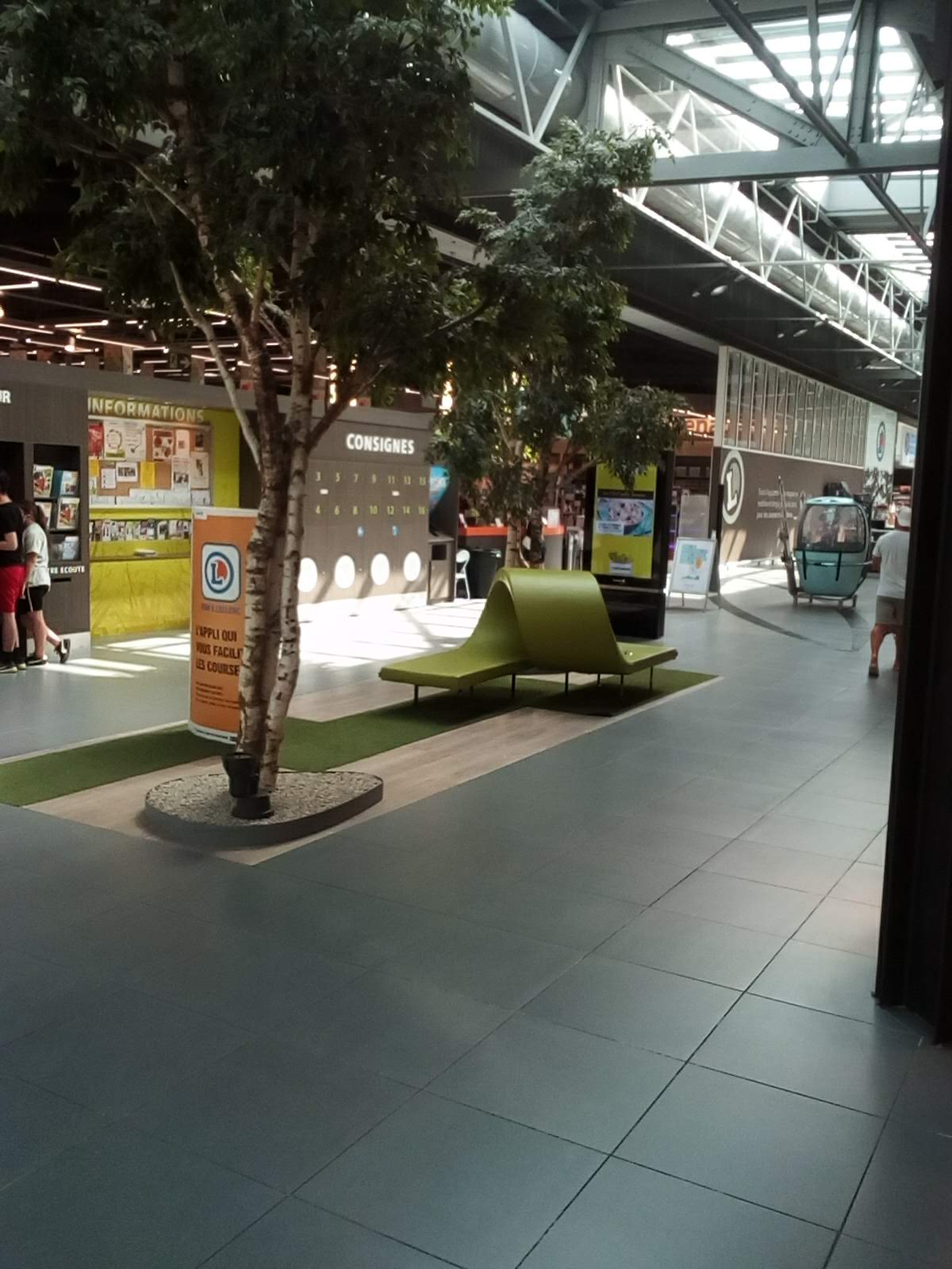 Galerie lumineuse et agréable. Vaste parking avec chargeurs Tesla. Resto sympa. Leclerc bien dimensionné.
