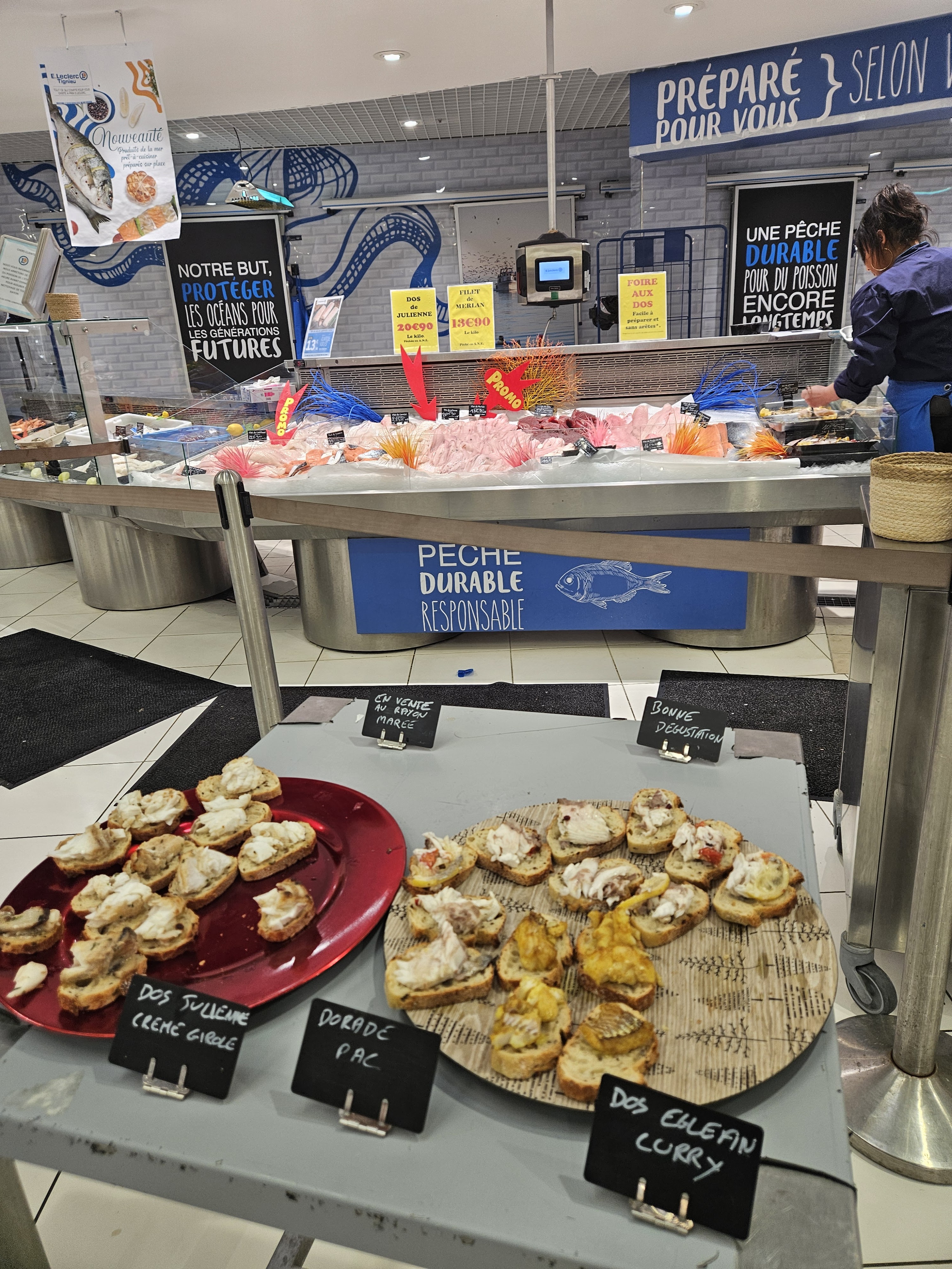 Une vraie surprise , un regale au rayon poissonnerie, dégustation qui s'est terminée par de belle courses. Merci à vous pour vos conseils