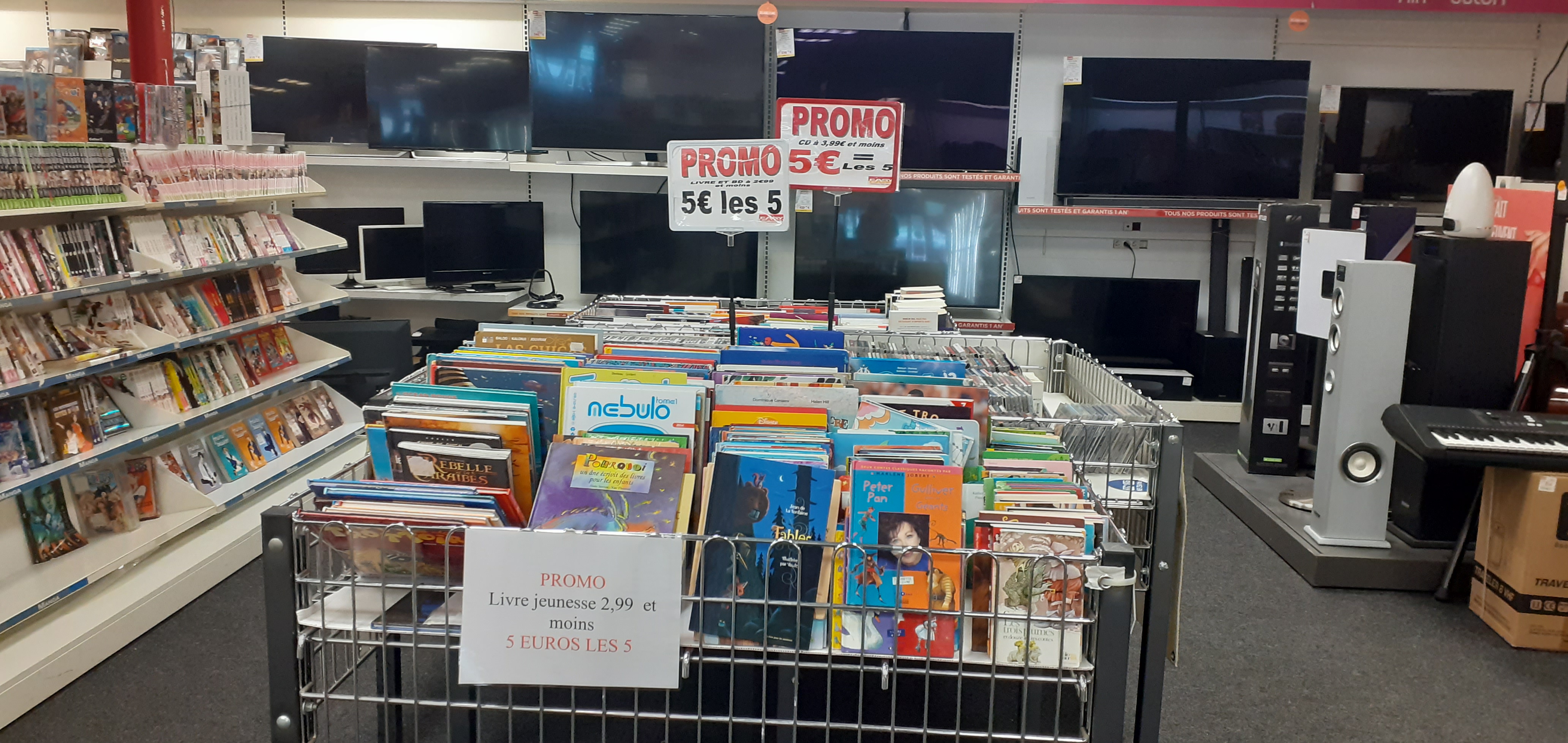C'est effectivement un peu le bazar, pour ne pas dire le bordel ! Les CD, livres, et DVD sont tous mal rangés. Certes il y a des tarifs intéressants, mais les offres sont mélangées, et arrivé en caisse, on nous dit que les articles ne font pas parties de l'opération promotionnelle. Du coup on perd son temps !