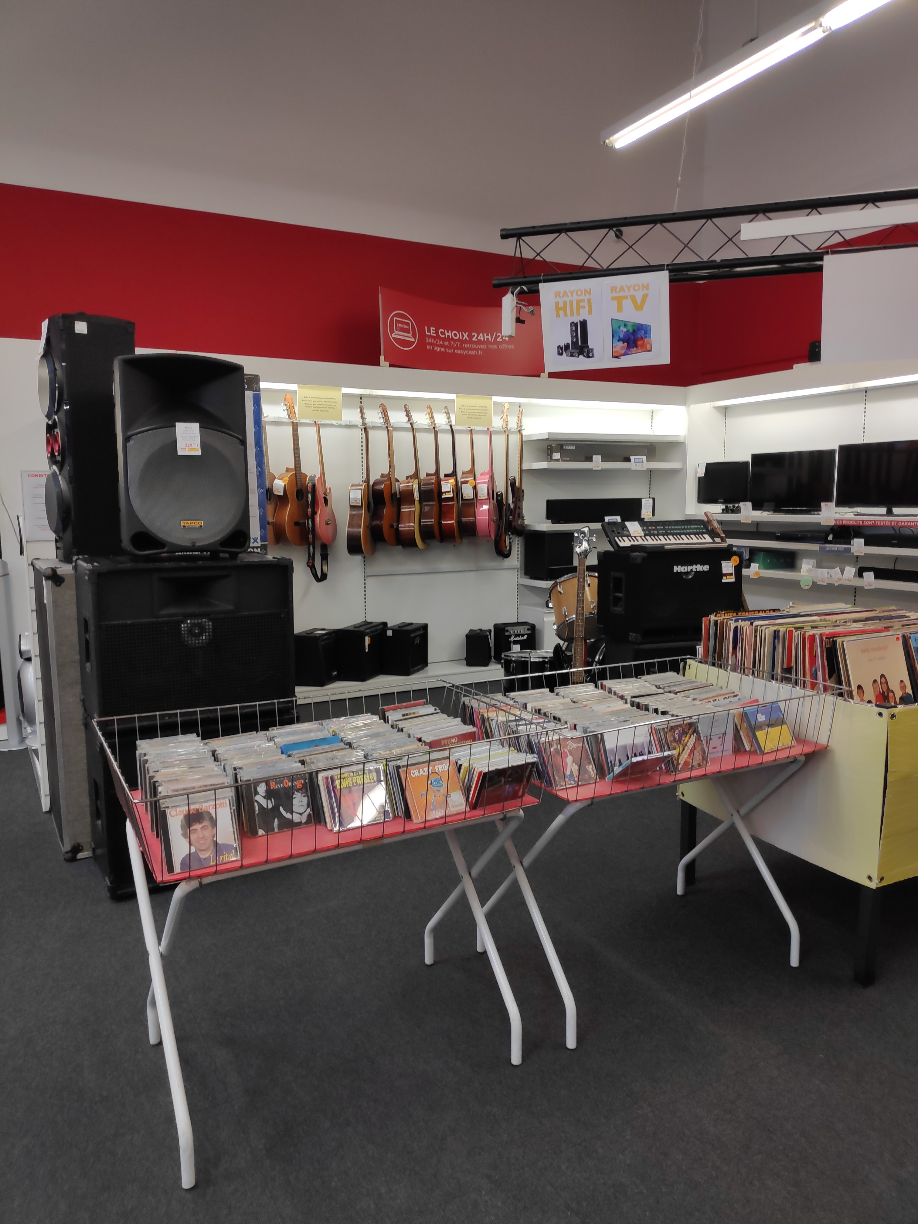 Magasin de la chaîne de produits d'occasion Easy Cash à l'entrée nord-est de Valence. Il est propre et bien tenu 🤡. L'agencement est classique, sans surprise. Bon choix en DVD (pas classés par titre, malheureusement), pas mal de BD aussi. Dommage, le parking en face est plein de déchets, ça gâche le ressenti positif.
