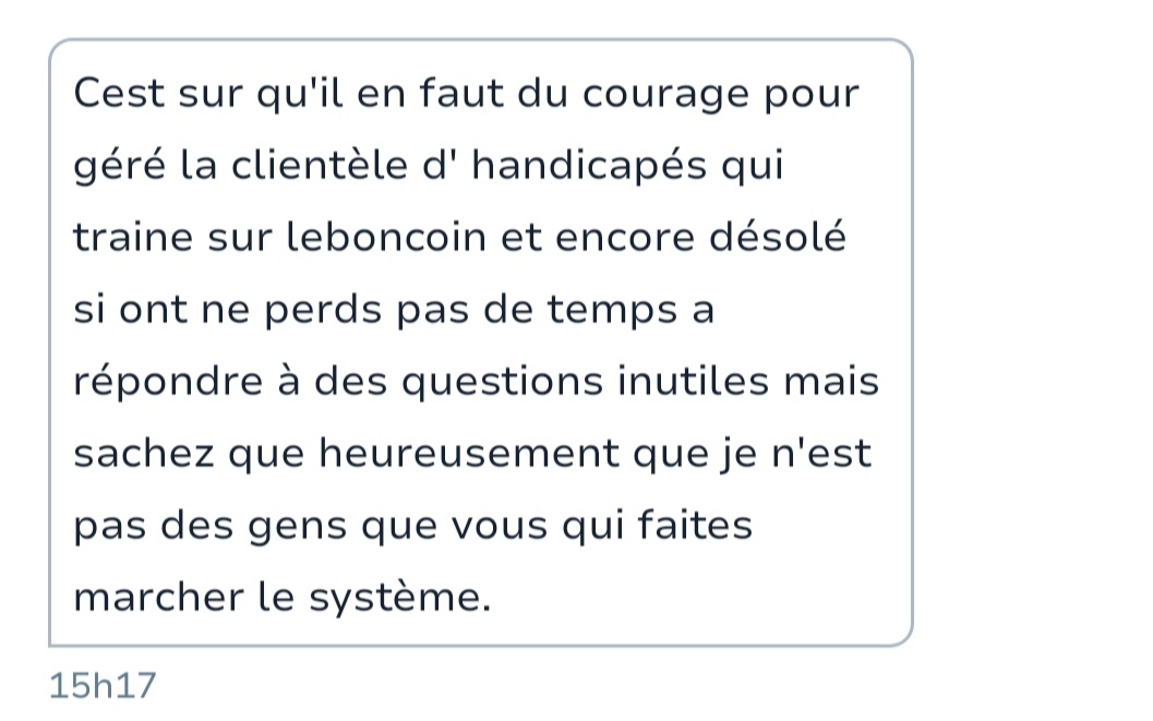 Raccroche au nez alors qu'il propose de pièces sur le bon coin... On voit à qui on à a faire.