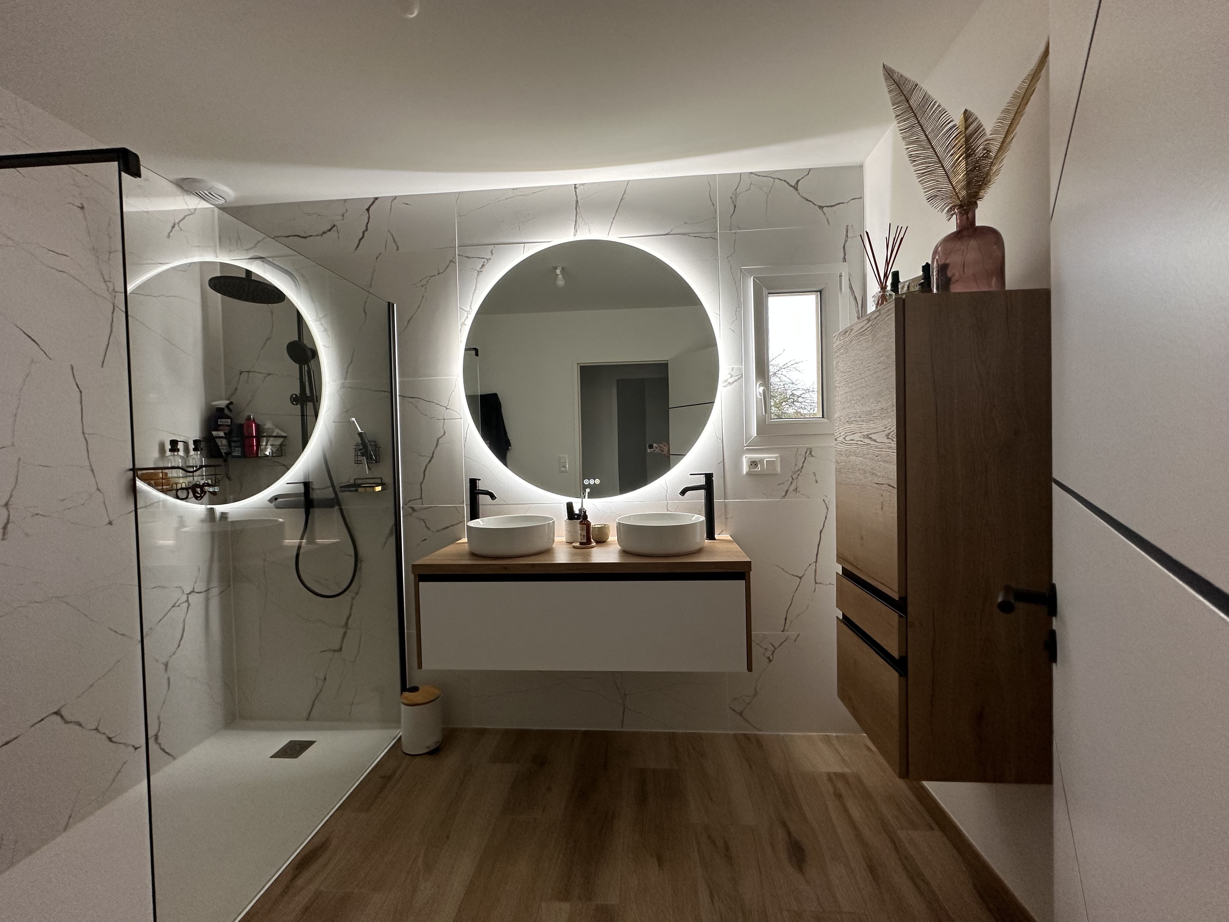 Nous tenons sincèrement à remercier Kevin pour son implication et son aide concernant le choix de notre faïence de salle de bain, le carrelage de notre maison ainsi que le parquet de nos chambres. Nous souhaitons souligner sa patience, son écoute, son professionnalisme, sa bonne humeur et ses précieux conseils pour la réalisation de nos travaux. Il a su cerner au mieux nos besoins, nos envies, nos demandes et nous orienter au mieux pour faire de notre maison un lieu agréable. Petit bémol un paquet de 4 carreaux de faïence (dans la douche), ne sont pas tout à fait de la même teinte que les autres ( les 4 carreaux sont plutôt couleur coquille d’œuf alors que les autres sont bien blanc) mais nous nous sommes rendu compte de cela une fois la faïence terminée donc trop tard.. mais le rendu final est à la hauteur de nos souhaits.