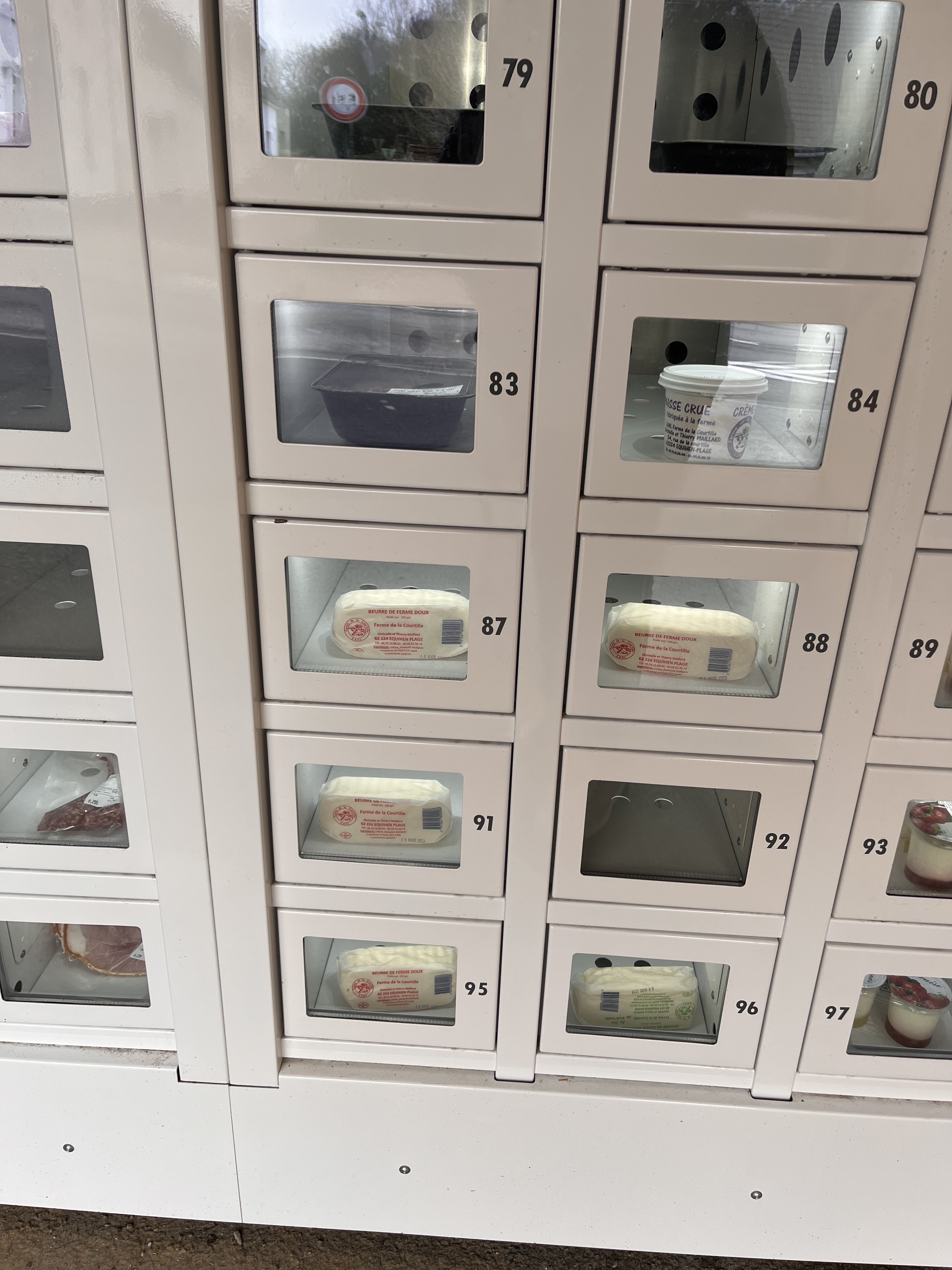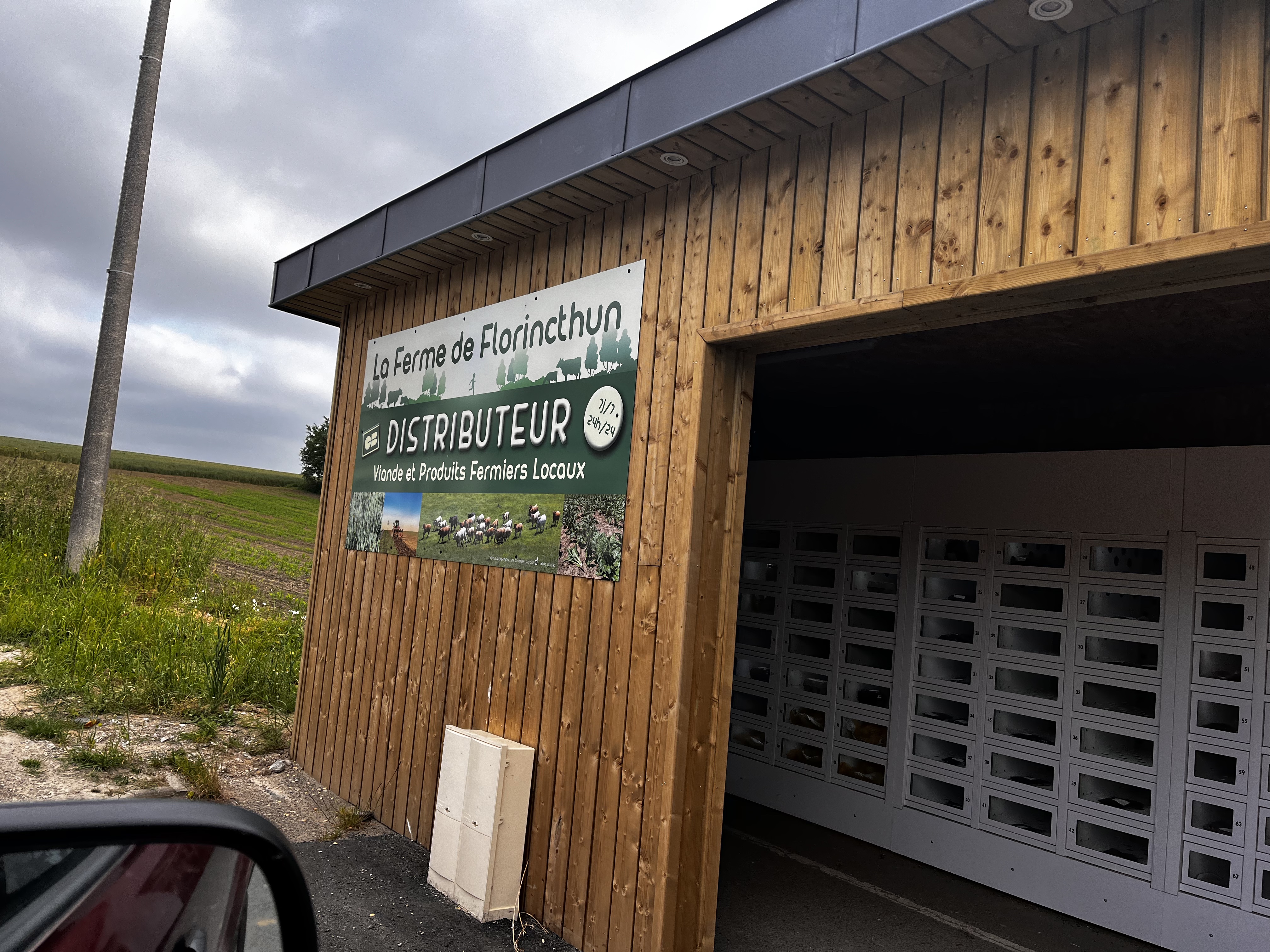 Nous sommes tombés sur un distributeur de la ferme se trouvant sur national à côté d’un garage donc j’ai pris des produits comme poulet 🐓 de la viande beurre des œufs frais des fraises et quelques légumes franchement 1ere fois et très satisfaite .. tout est bien expliqué pour se servir et les produits sont frais merci aux producteurs et c un 24/24 donc on y reviendra car franchement c’est un régal au palais 👍👍👍