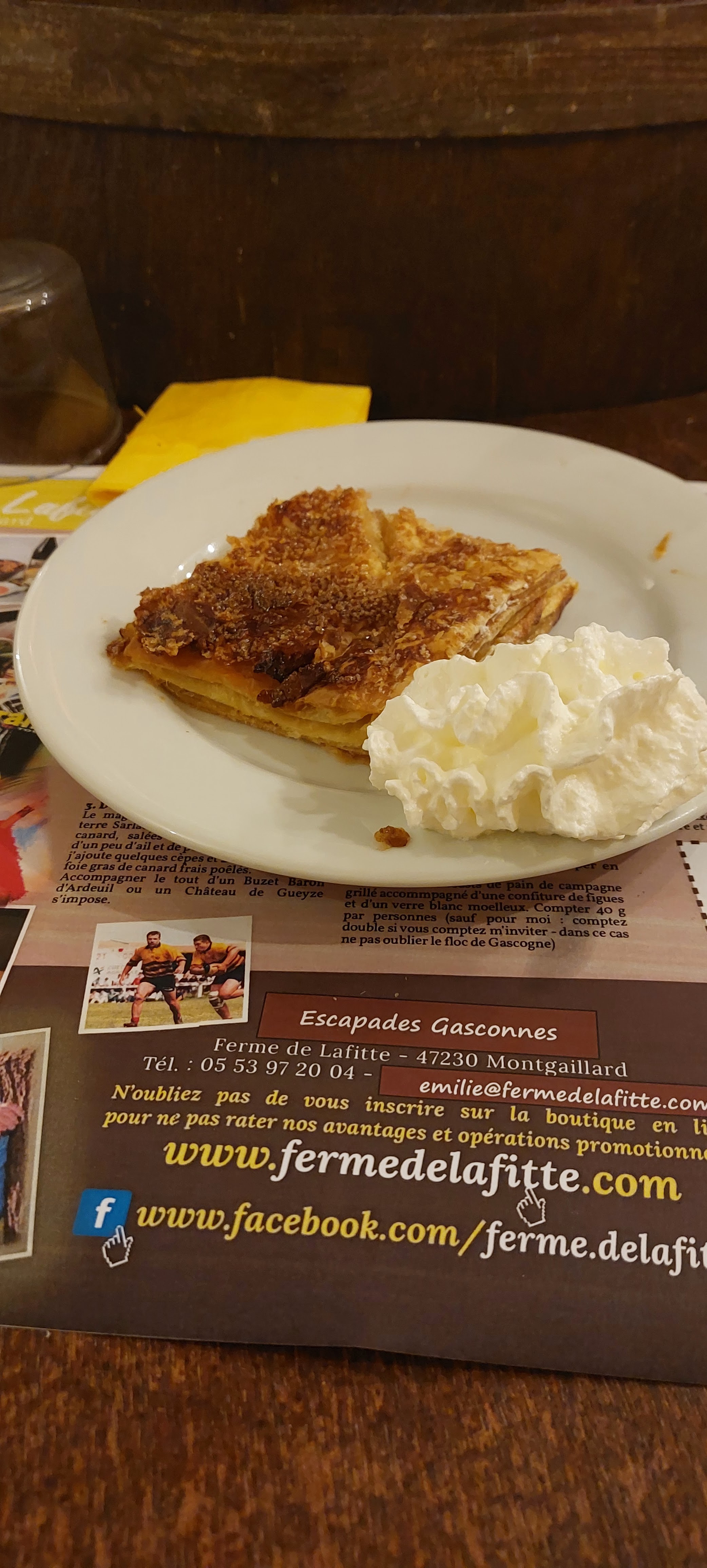 Soit nous sommes trop exigeant soit nous n avons pas pas tous la même notion d accueil Nous sommes camping cariste et nous sommes abonnés à France passion en arrivant nous voyons plein de panneaux nous annonçant La Ferme de Lafitte : alors repas sur réservation, dégustation gratuite, foie gras, vin de Buzet etc comme on arrive à l heure du repas évidemment nous avons attendu le début d après midi pour rentrée. La personne deservait les tables du midi donc on a fait le tour pour voir les produits et là on demande à goûter le vin et on nous répond : ah oui mais là j en ai pas d ouvert alors...... elle est repartie desservir ....bon on prend malgré tout 3 bouteilles + une bouteille d apéritif qu'elle voulait nous vendre 2€ de plus prétextant qu'on voyait mal le prix et a qui la faute nous sans doute et qu il fallait qu elle va voir l ophtalmo parce qu'elle y voyait Mal ben voyons. Peut être que la table est bonne mais arrêter de faire de la vente au détail si on vous embête. Juste un mot pour les camping car plus de 6m50 attention parking casiment néant, on peut soit disant faire le plein d'eau mais on ne peut pas approcher (perso nous n'en avions pas besoin) Passer votre chemin