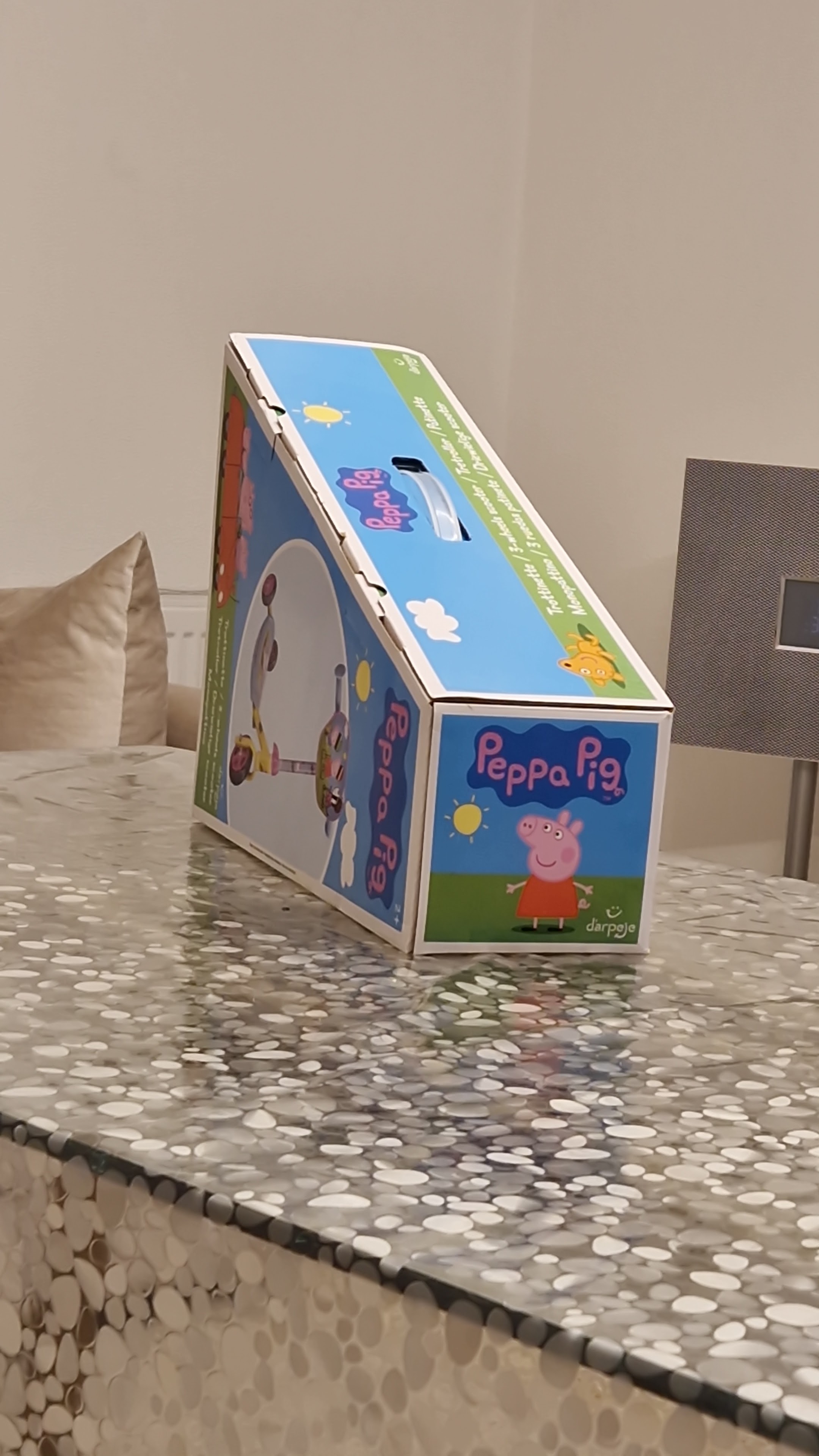 Commande d'une trotinette peppa pig, envoi très rapide et bien emballé, j'ai eu en plus deux petits cadeaux une carte anniversaire et un petit arbre magique pour la voiture !!! Que demander de plus ! Un service au top ....j'ai juste été un peu surprise par l'envoi car je n'avais pas reçu de mail de confirmation d'envoi par flash jouet mais cela n'est gênant en rien le colis m'a bien été indiqué lorsqu'il est arrivé au relais Au top je recommande