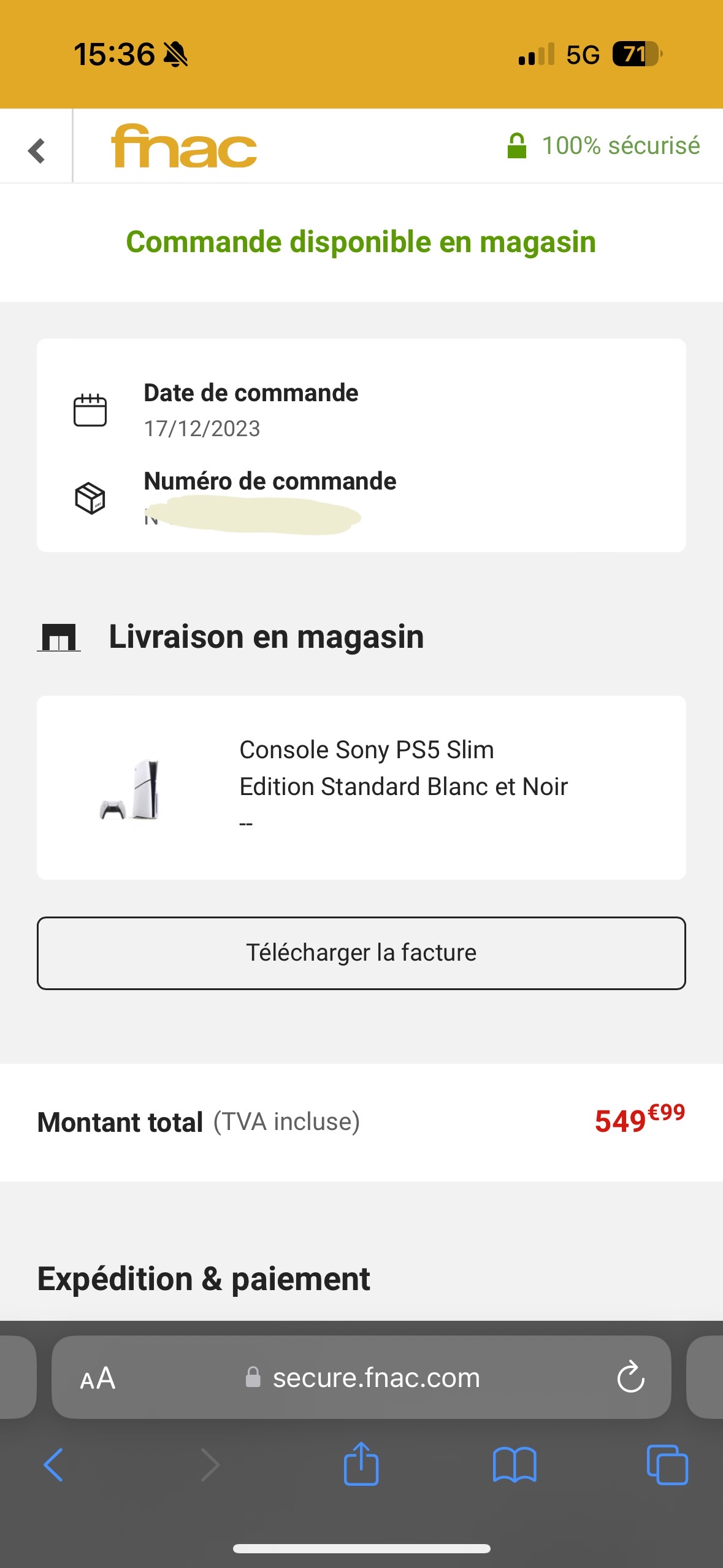 J'ai commandé un livre le 6/12/2021. Aujourd'hui, 28/12, article toujours pas arrivé, aucune info par mail ou SMS, et pas de téléphone pour joindre la Fnac ... Je vais devoir aller au magasin faire la pêche aux renseignements...