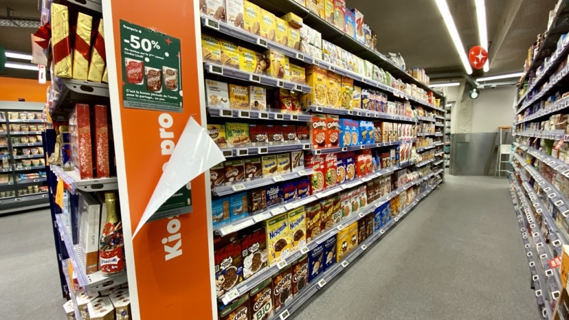Magasin Franprix classique il y a du choix en rayon. Les Kinder Cereale sont absent, les tablettes de chocolat sont en tête de gondole.