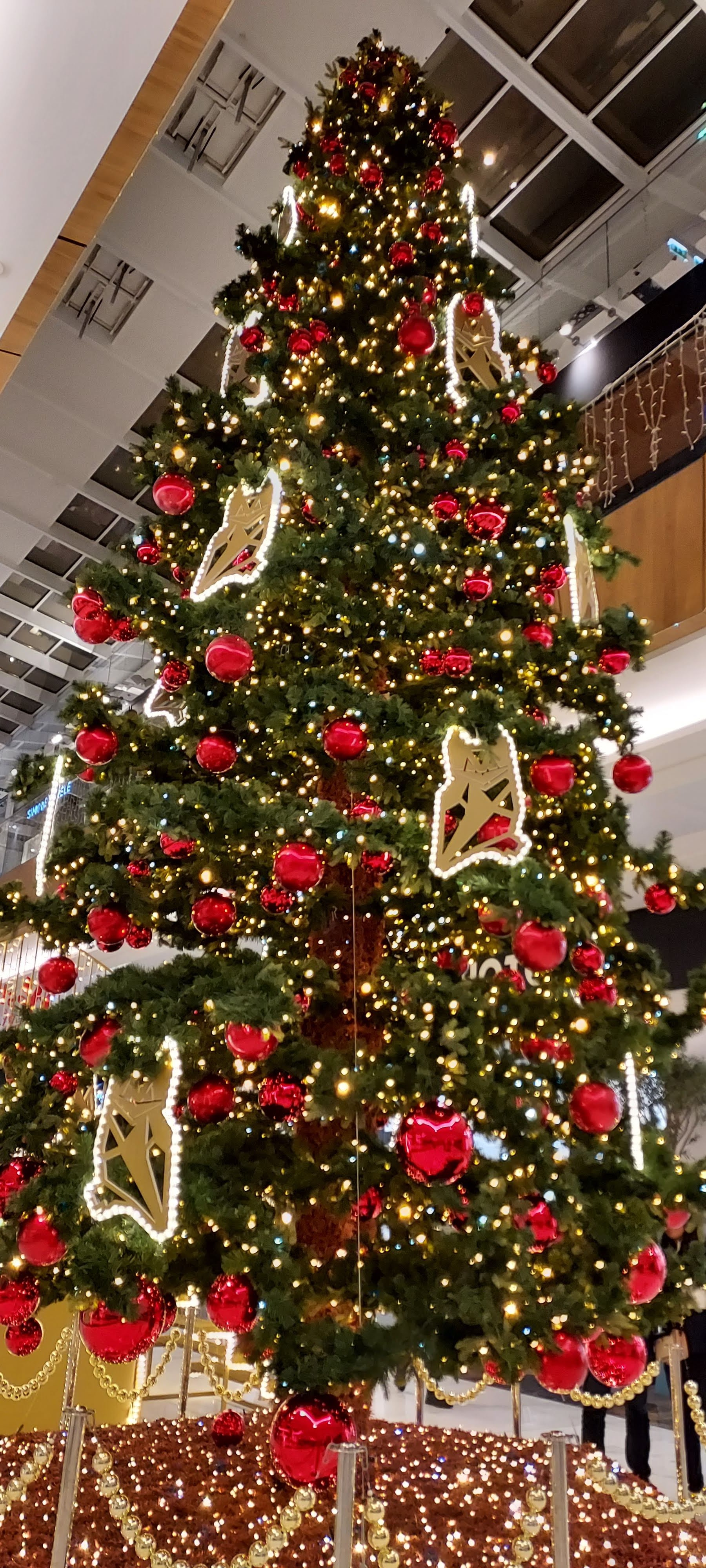 Beau centre commercial , déjà décoré pour Noël.
