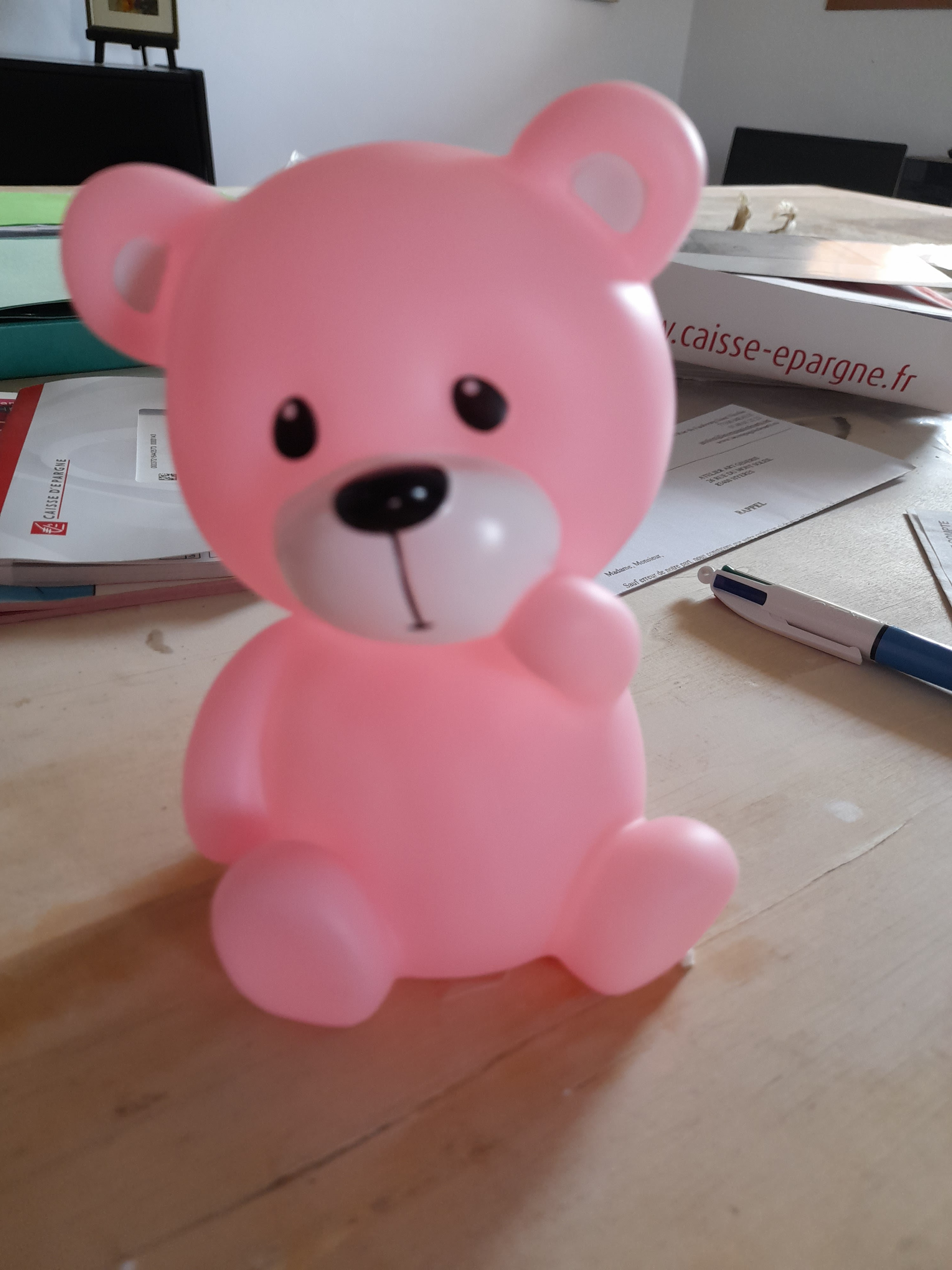 Produit défectueux, cassé au niveau des piles. J'ai procédé au changement et toujours hors fonction. Comme j'en ai marre de faire les allers et retours je vous conseille cependant de supprimer toute la série.... de cet article ourson lumineux Led. Le défaut doit être à tous... PAS CHER MAIS ON EN A POUR SON ARGENT