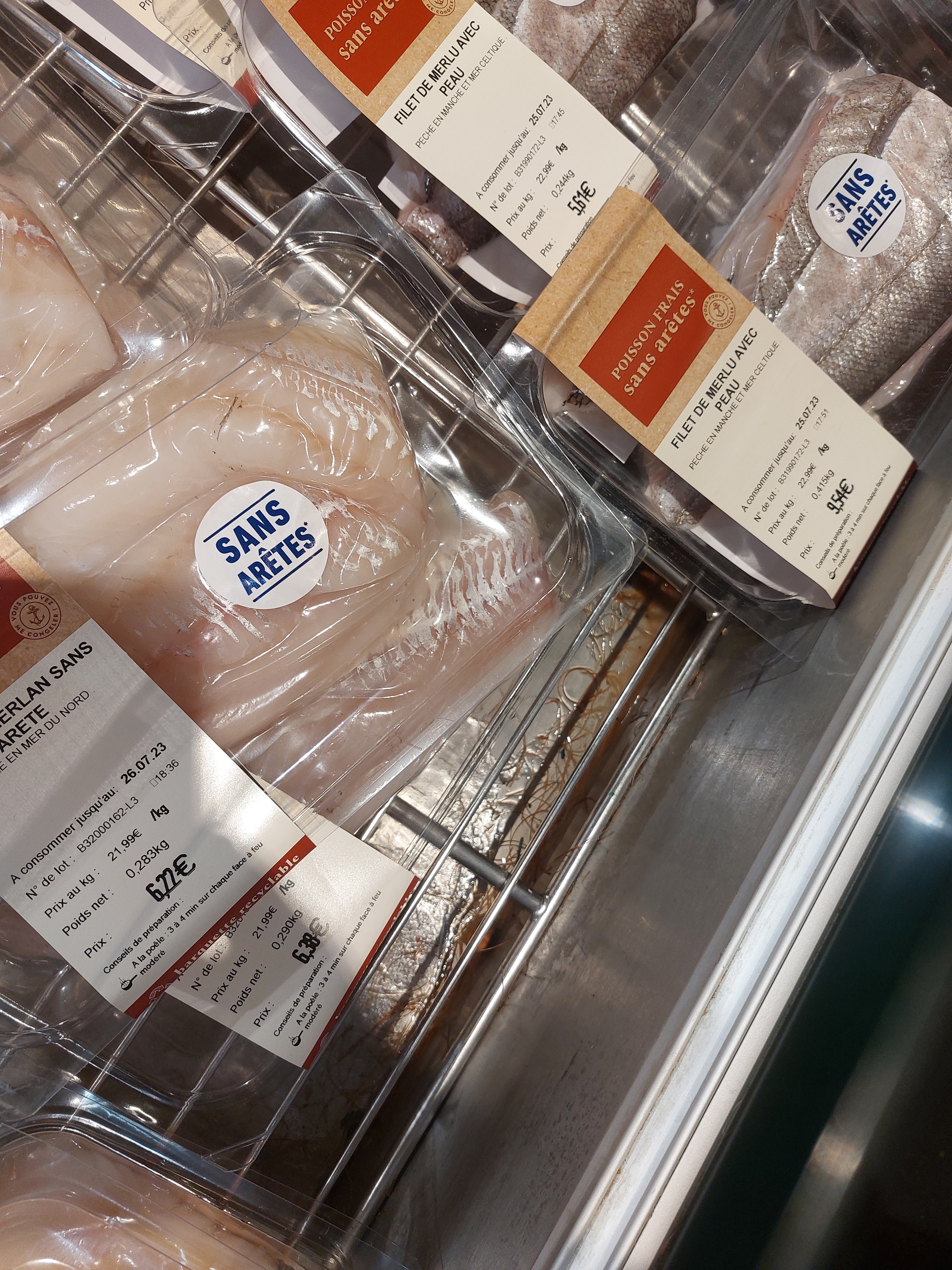 Poissons et coquillages pas frais , ammoniaqués .c’est la deuxième fois. Anneaux de seiche , lottes bardées et couteaux : à jeter. Par contre les fruits et légumes sont toujours très bien.