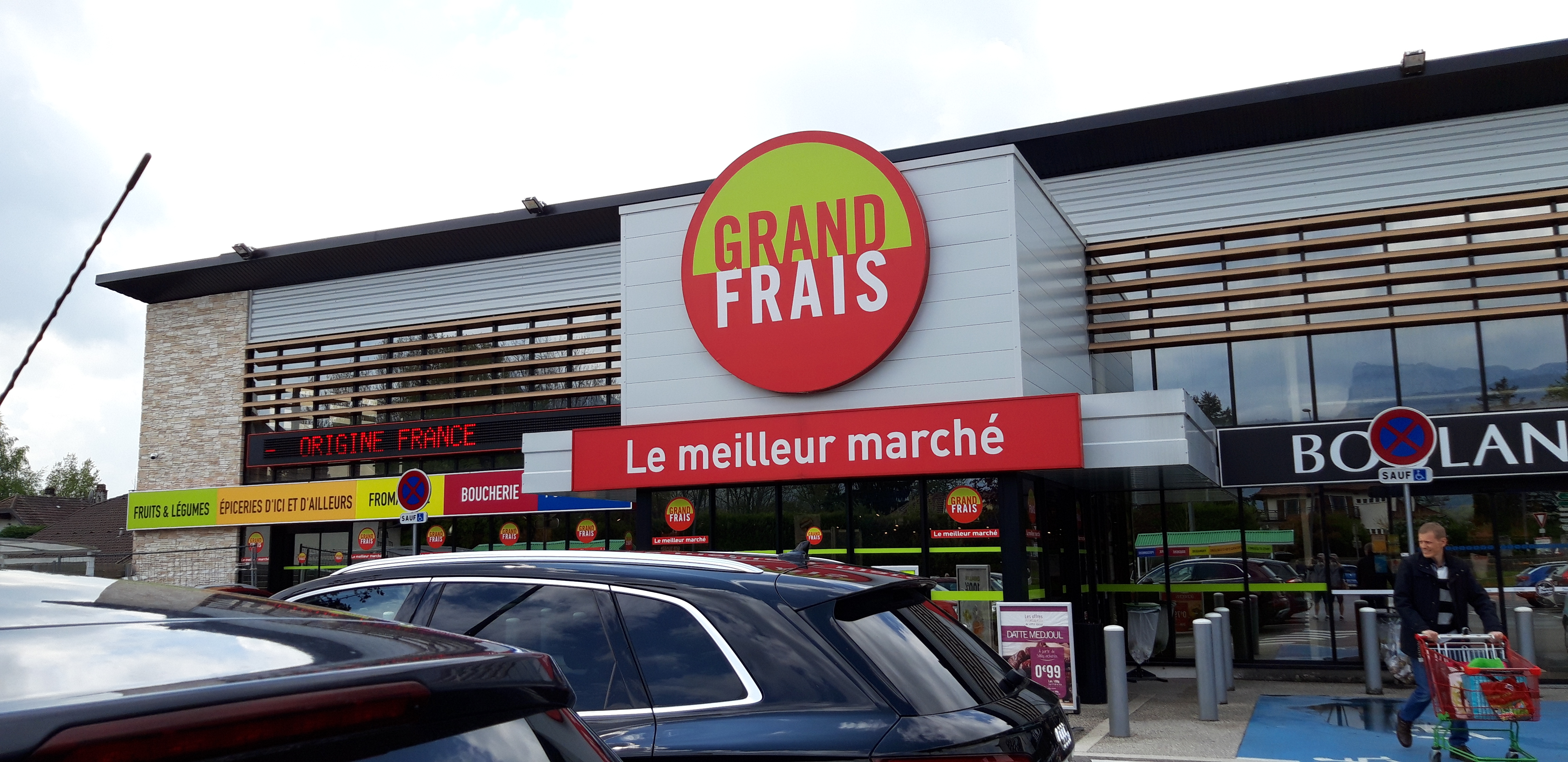 Grand frais installe à l entrée d Argonay Tous les grands frais sont construits sur le même principe On y trouve toute l alimentation fruits légumes fruits secs viandes fromages vins conserves Les rayons sont larges et propres Le personnel agréable Le parking est petit……..