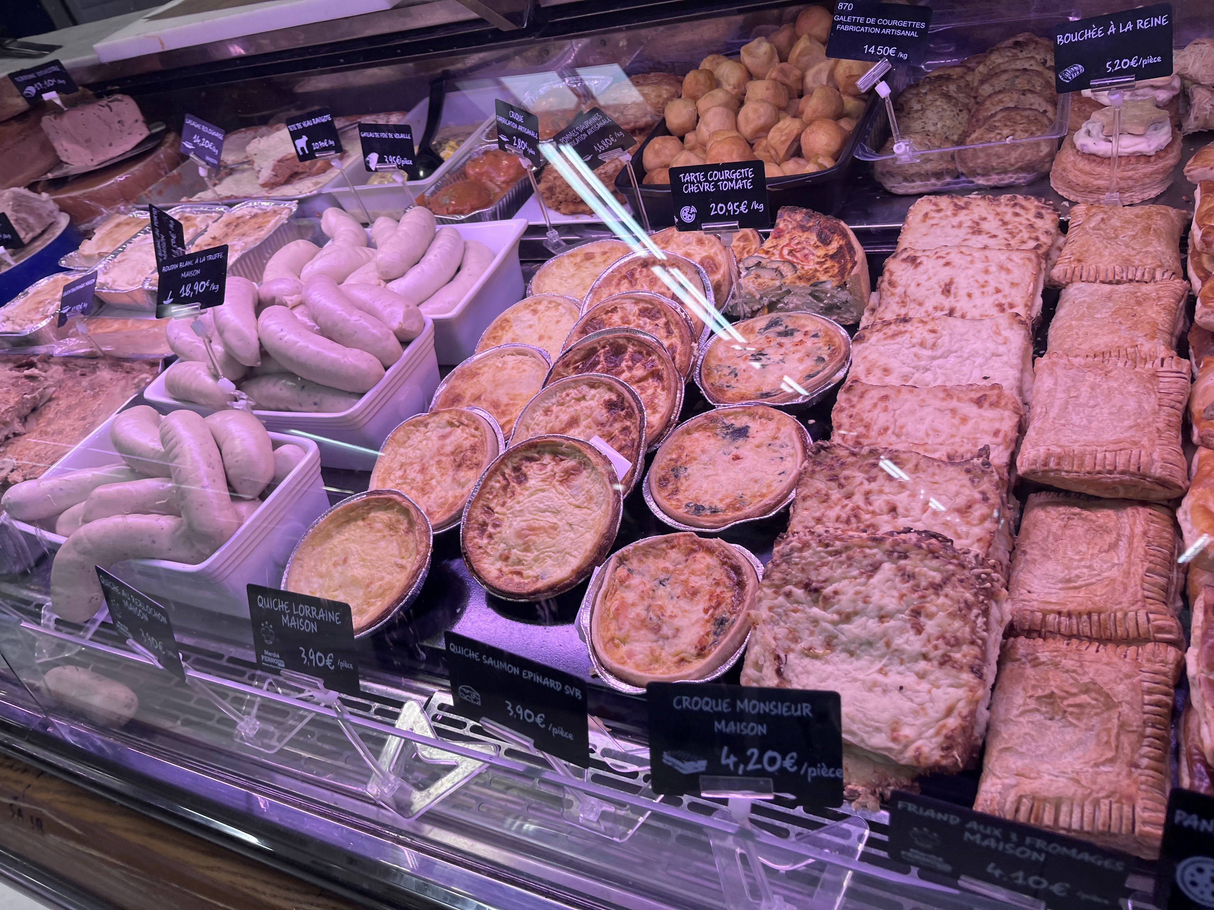 Large choix de viandes, poissons et fromages de qualité, ainsi que de fruits, légumes confitures et épices. Le dessert et le pain peuvent être achetés à côté chez Marie Blachere. Desserts delicieux à des prix défiant toute concurrence