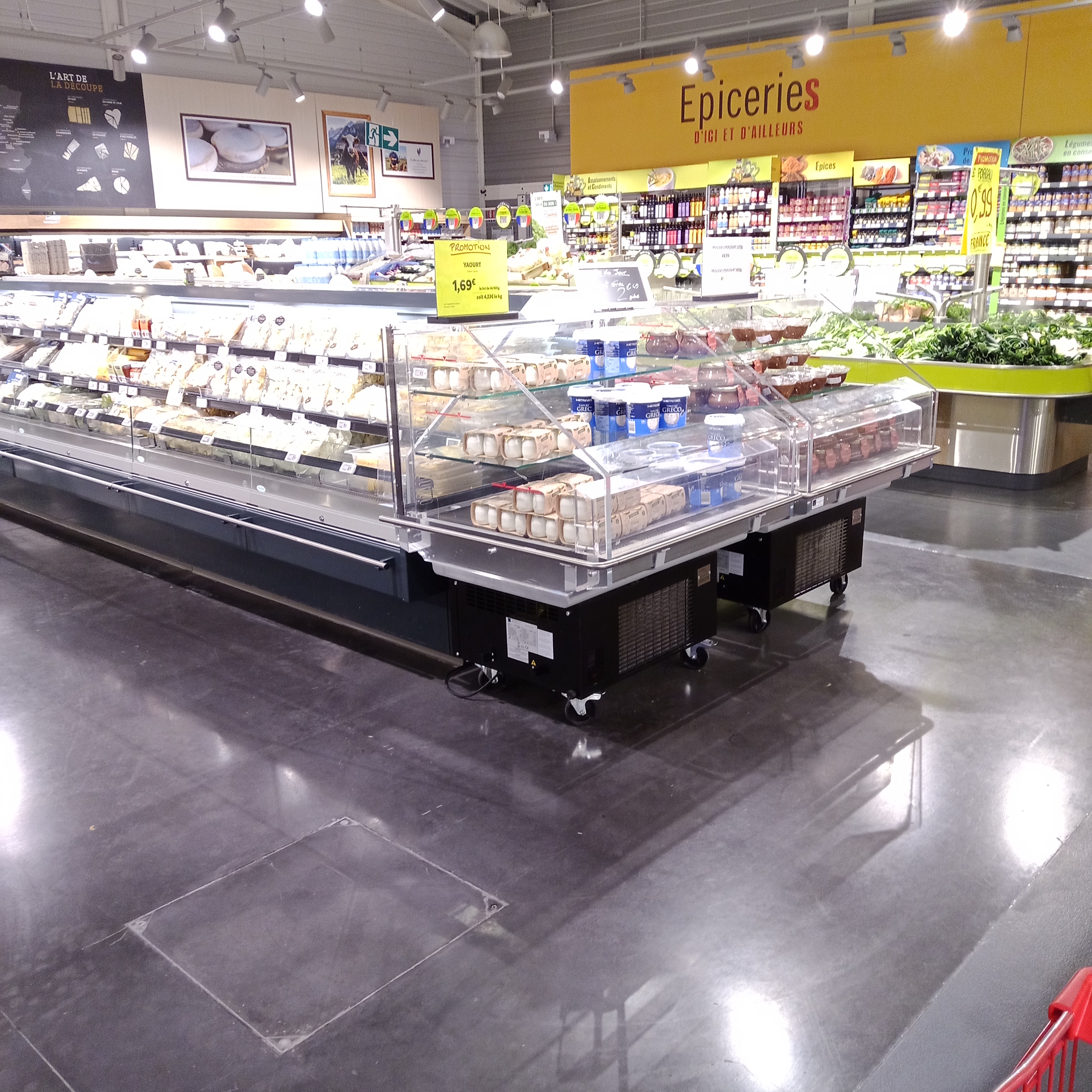 Produits très frais. Grand choix, notamment rayon fromages, laitages, légumes et fruits frais. Personnel sympathique notamment en boucherie.