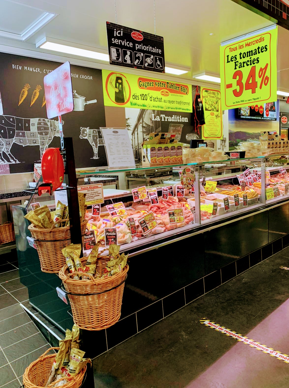 Produits souvent meilleurs qu’en supermarché La boucherie est moins chère que la boucherie de mon quartier et il y a des réductions selon le jour (mardi poulet, jeudi bœuf haché par exemple) Les employés sont sympathiques J’utilise souvent les tickets restaurant pour régler une partie des courses