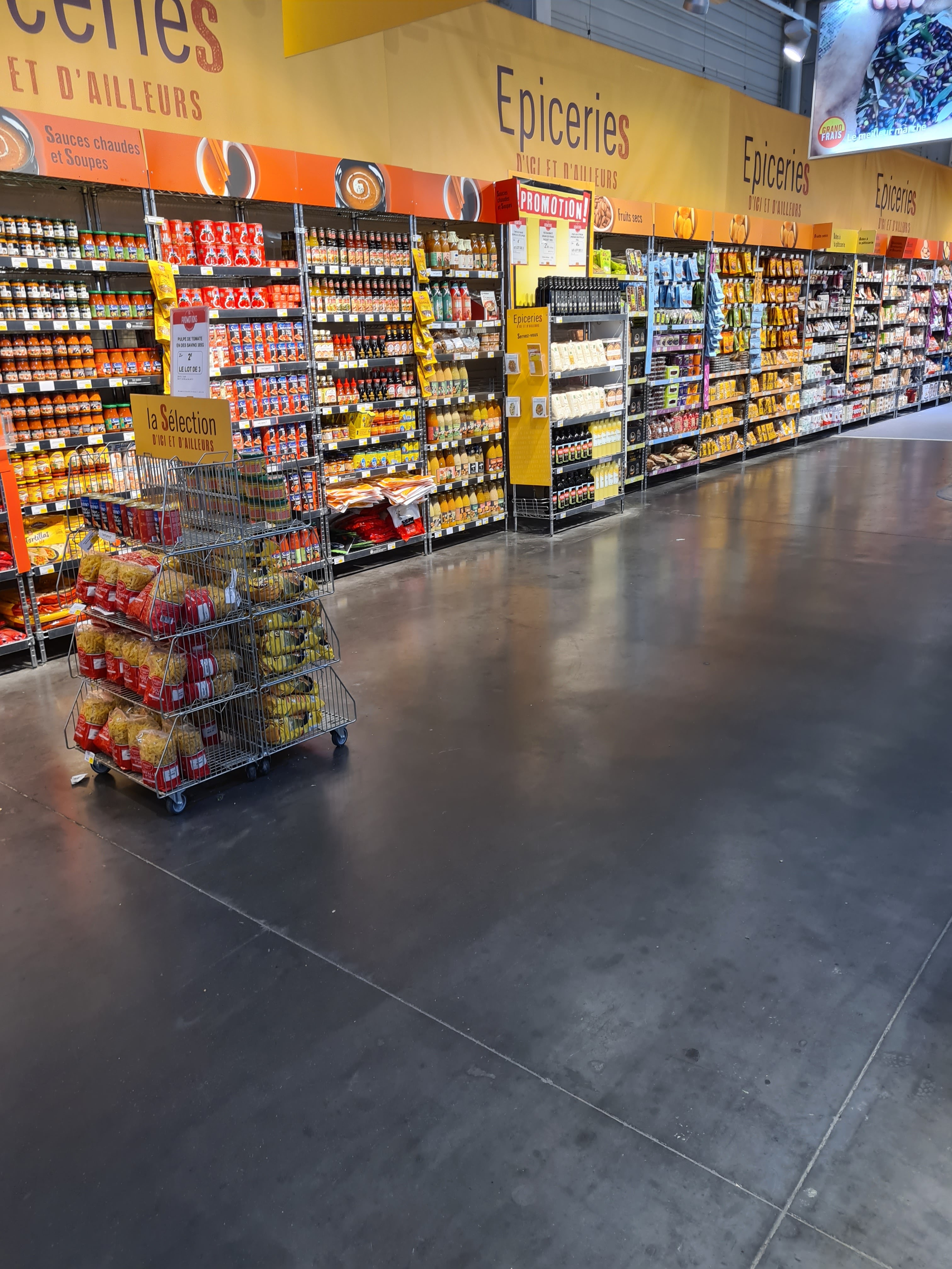 Grand frais très complet. Rayon traiteur, véritable boulangerie, poisson et crustacés, fromages. Des produits au attentes de l'enseigne. Petit plus, certains produits comme des sacs de riz de 20kg sont disponible.