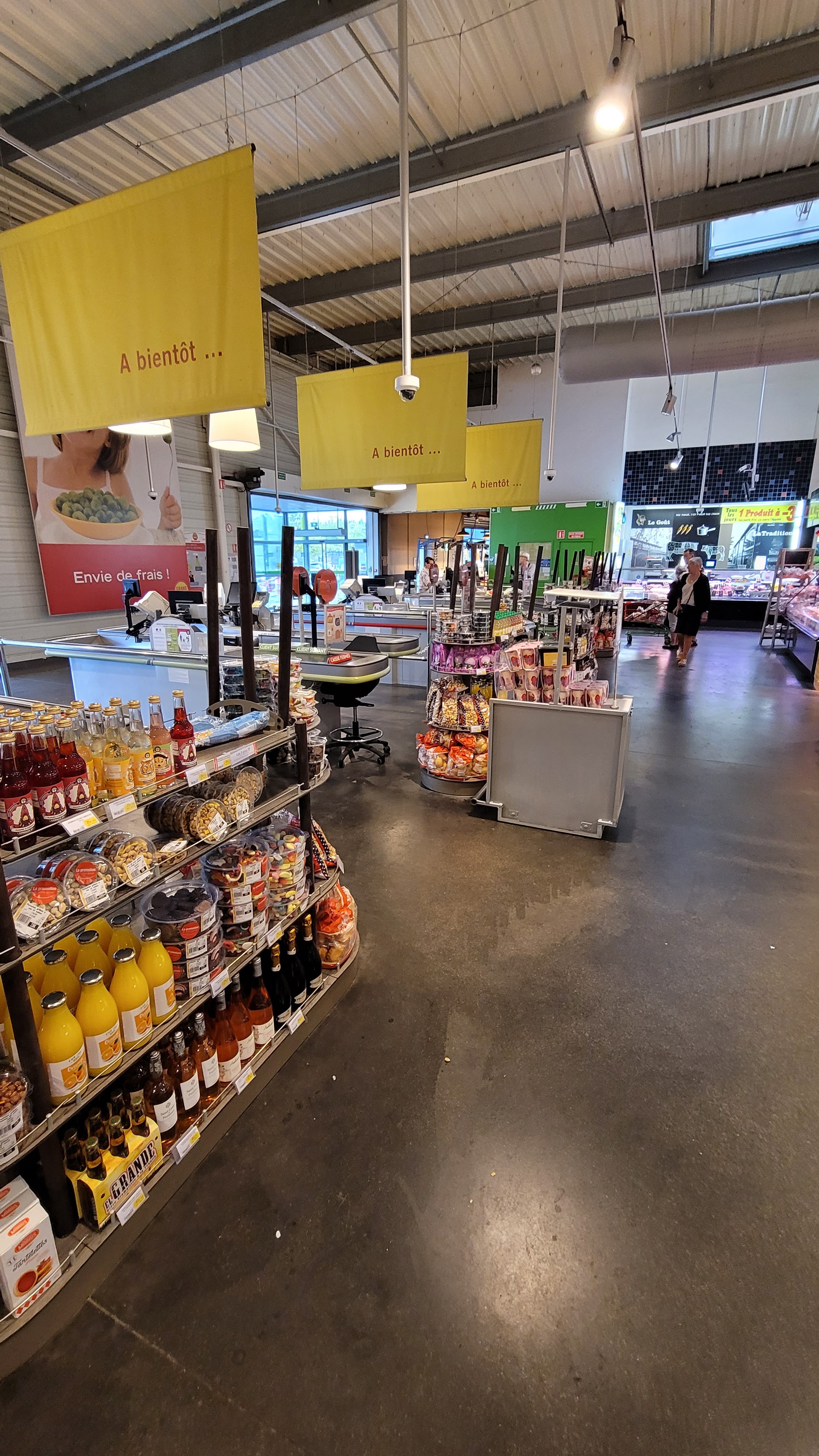 Un concept nouveau avec un cœur de cible sur les produits frais Mais à ma grande surprise cela ne correspond pas à leur campagne de publicité. Pas de boucherie. Pas de poissonnerie. Sinon légumes et fruits ect... C est très bien et dans cette période d inflation les prix sont très correct. Comme souvent pour une meilleure rentabilité ses enseignes Sont installés en périphérie des villes. Donc véhicule obligatoire.