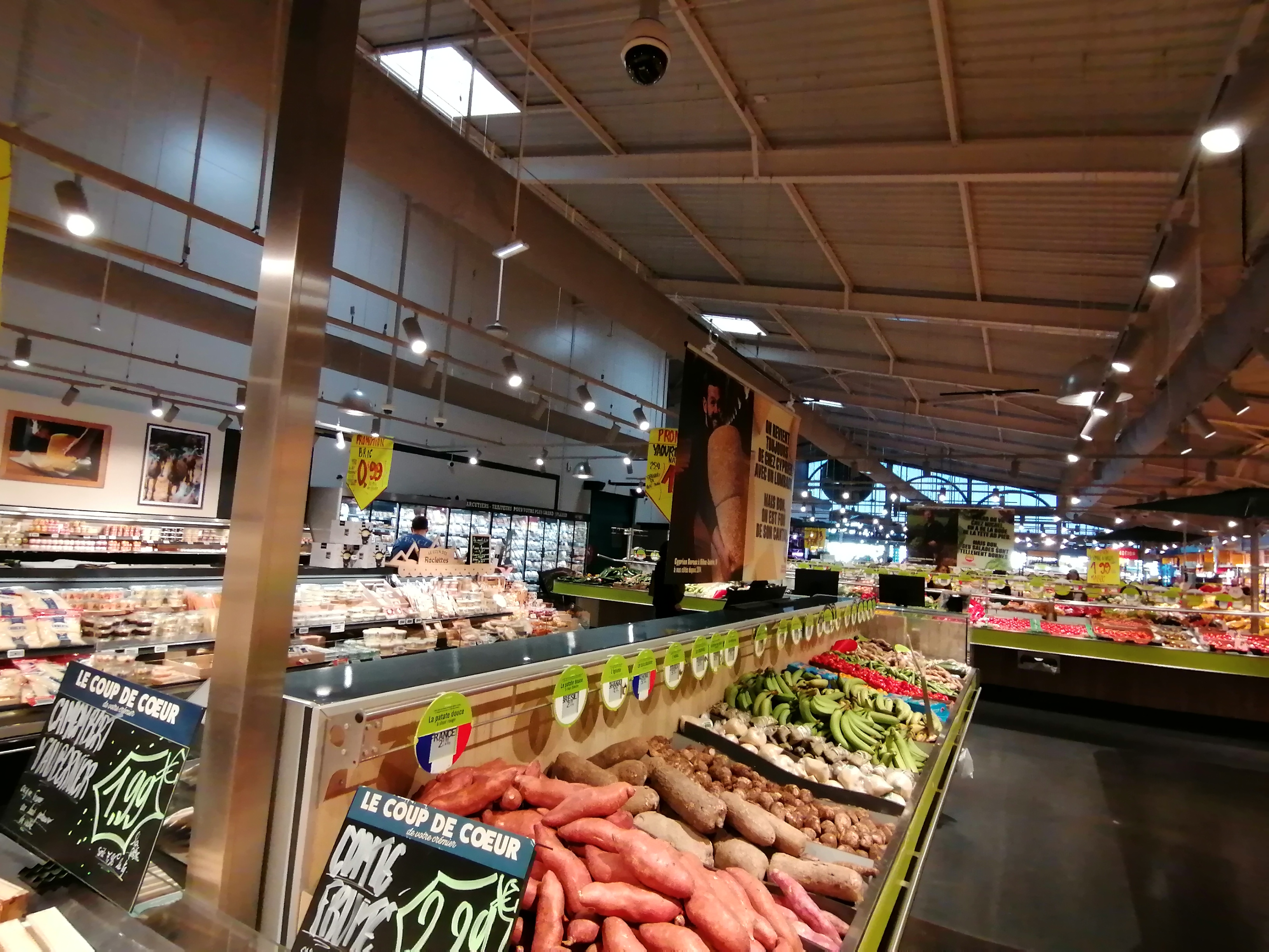 Tout comme sur un marché des légumes et des fruits de belle qualité, et une fromagerie très bien fournie mais he n'oublie pas un beau rayon boucherie