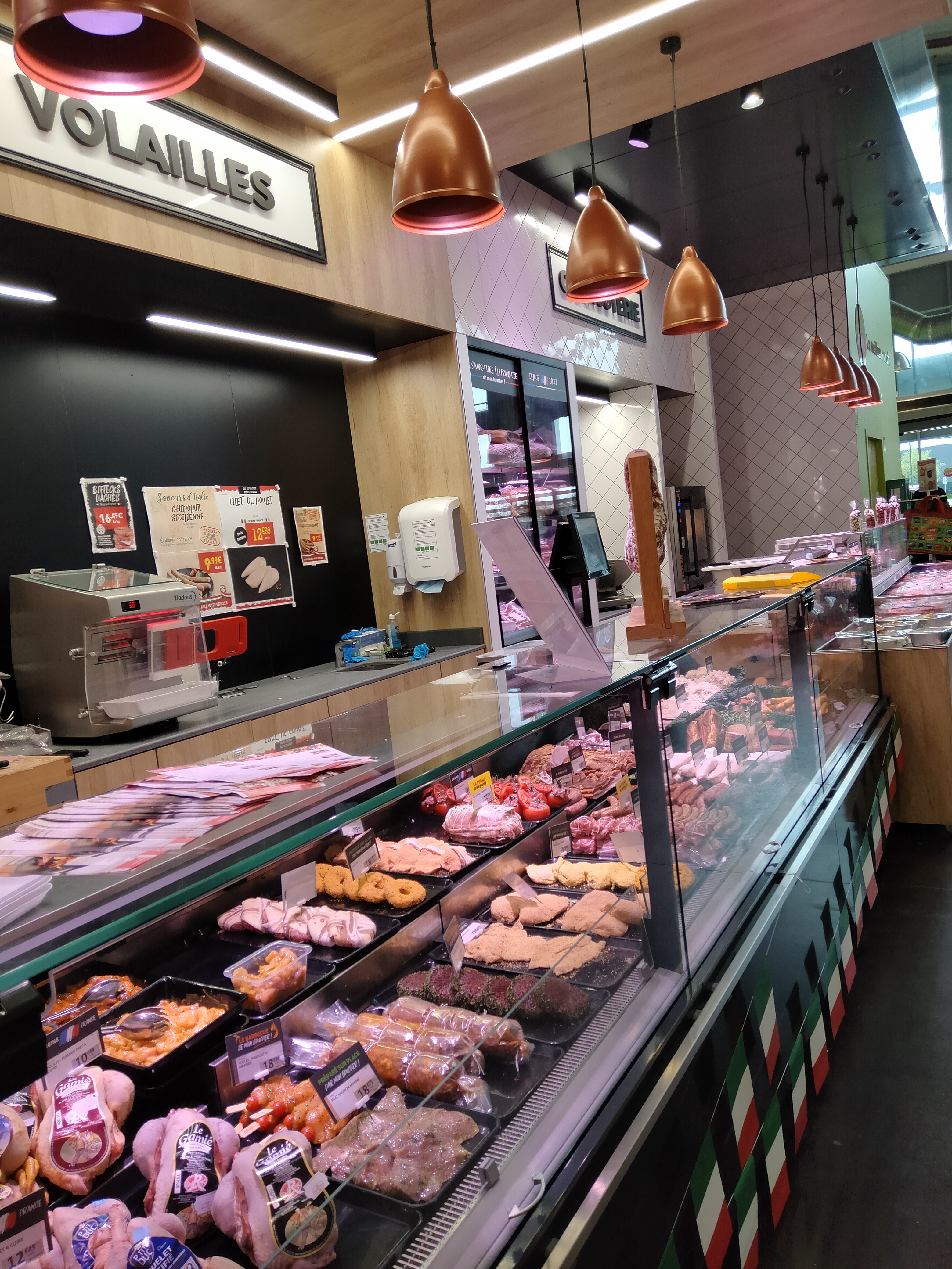 Beau magasin,propre tout semble bien...sauf certain prix ,rognons de veaux au kilo 31.99,ce qui fait la pièce de 335g a 10.72 e .jamais je n ais vus un tel prix .bien sur j ai payer car j avais une note de boucherie de 49.60e.A CASINO le kilo est a 16.50 E inadmissible.
