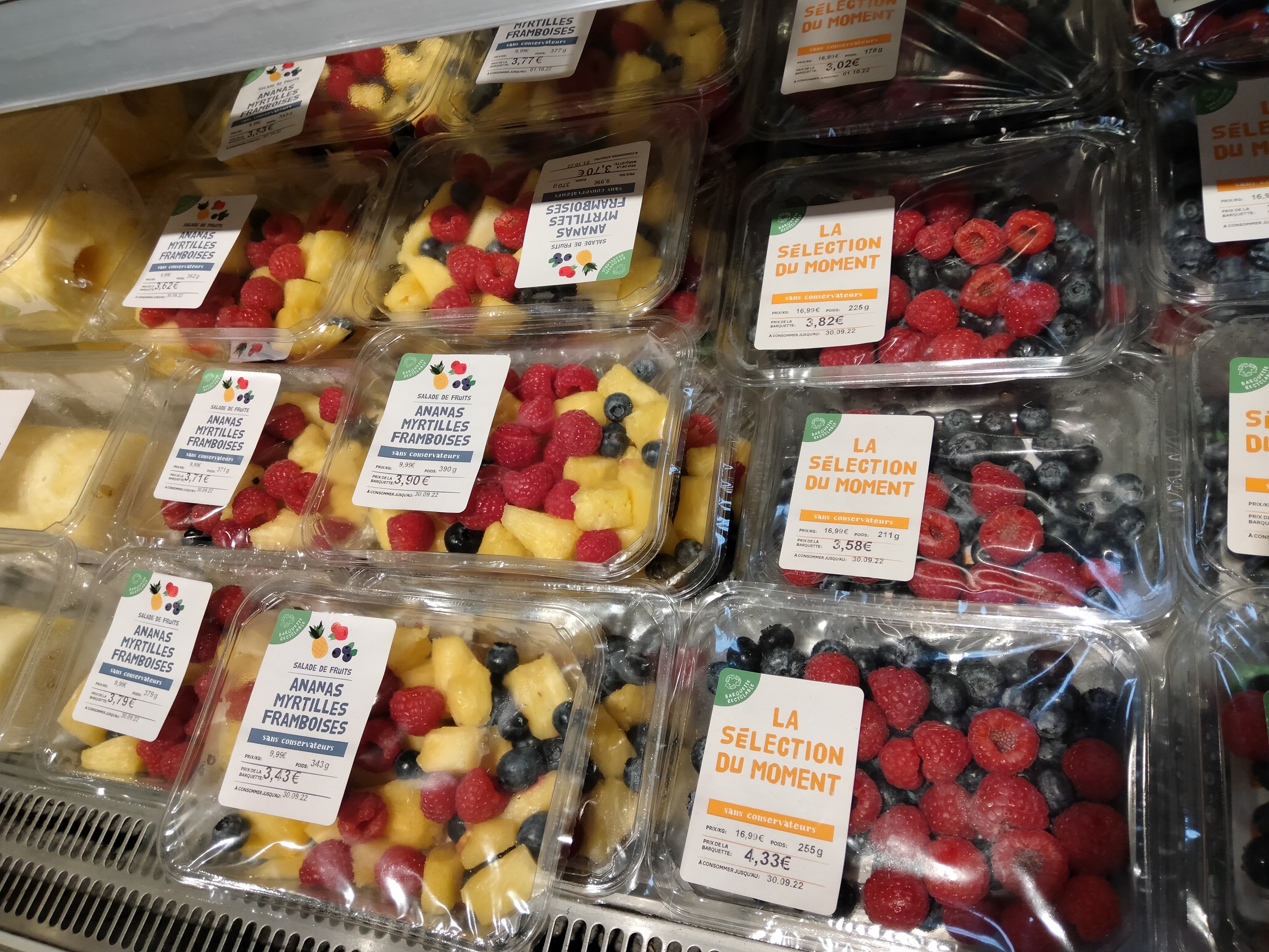Beaucoup de fruits viennent d'Espagne ou du Maroc. Je boycotte! Vraiment dommage. Avec le mois de juin qu'on a eu il y a moyen de proposer des produits français, non? Ce n'était pas comme ça avant. Tout ça à des prix exorbitants, autant aller dans un supermarché classique.