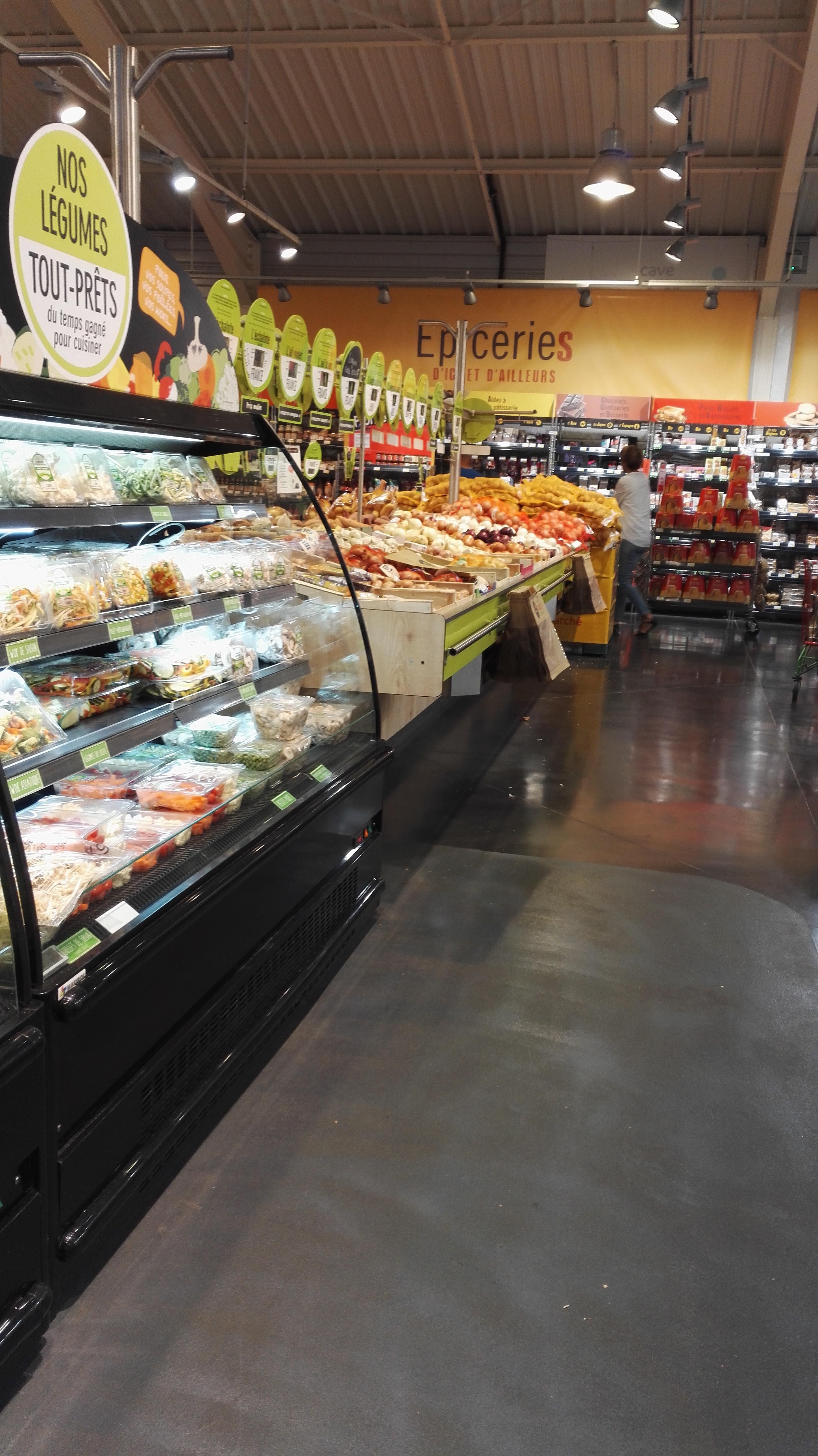 Grand choix fruits , légumes, viandes ,poissons, fromages, épiceries...un peu cher, heureusement prix malins et promos. Personnel accueillant.