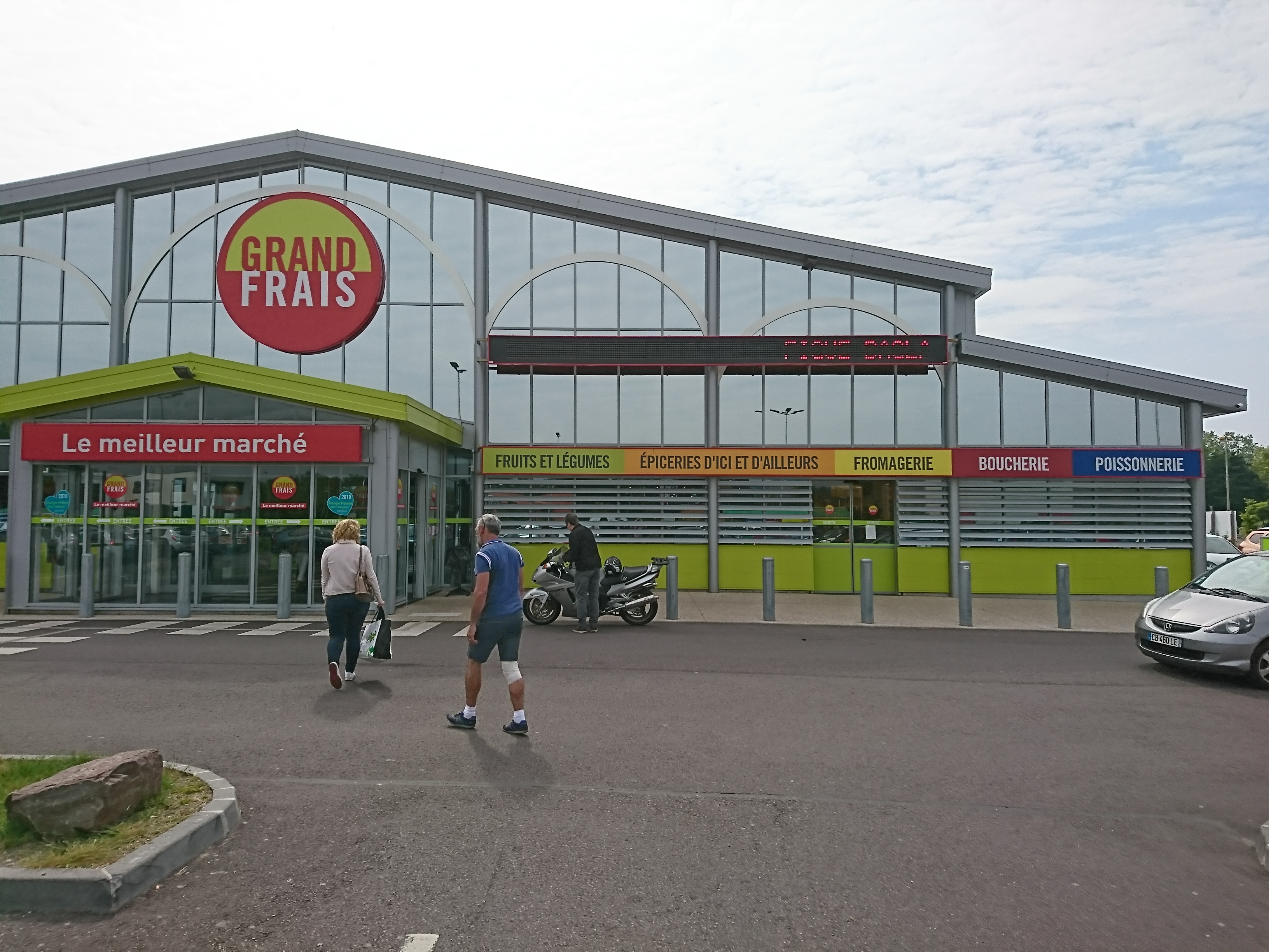 Grand Frais, n'est pas à classer au mm niveau que les autres surfaces commerciales mais comme un Grand Marché mettant l'accent sur la présentation de produits sérieusement sélectionnés dans un souci de qualité, d'aménagement spécifique, au maintien de leur fraîcheur et proposés dans une large gamme dans chaque produit. Dès l'entrée, un vrai boucher qui vous conseille sur le choix des morceaux bien exposés en rayons et armoires frigorifiques ; les poissons parfaitement présentés individuellement pour ne pas être abîmés et certains que l'on ne retrouve pas partout (rougets, œufs de cabillaud fumés..), les fruits et légumes brumises pour préserver leur fraîcheur intacte, plusieurs rayons de produits laitiers et tous les fromages de France et d'ailleurs, toutes les épices, sauces, pâtes comme dans une épicerie fine, un rayon entier consacré à tout ce qui s'offre à l'apéritif (divers mélanges de graines et biscuits, olives et autres petits farcis, prêts en barquettes ou au détail) sans oublier le coin gourmand des sucreries pour les petits et les grands, large choix dans les jus de fruits et aussi vins et spiritueux.....on peut comprendre alors que les prix soient légèrement supérieurs d'1 ou 2€ au kg. Le tout dans une atmosphère sereine. La boulangerie Marie Blachere contigüe à Grand Frais est toute aussi d'une grande qualité et diversité de pains et gâteaux avec des offres de prix par lot (ex. 4 baguettes pour le prix de 3 et vs choisissez entre 2 cuissons blonde ou très cuite, promos sur les tartes...