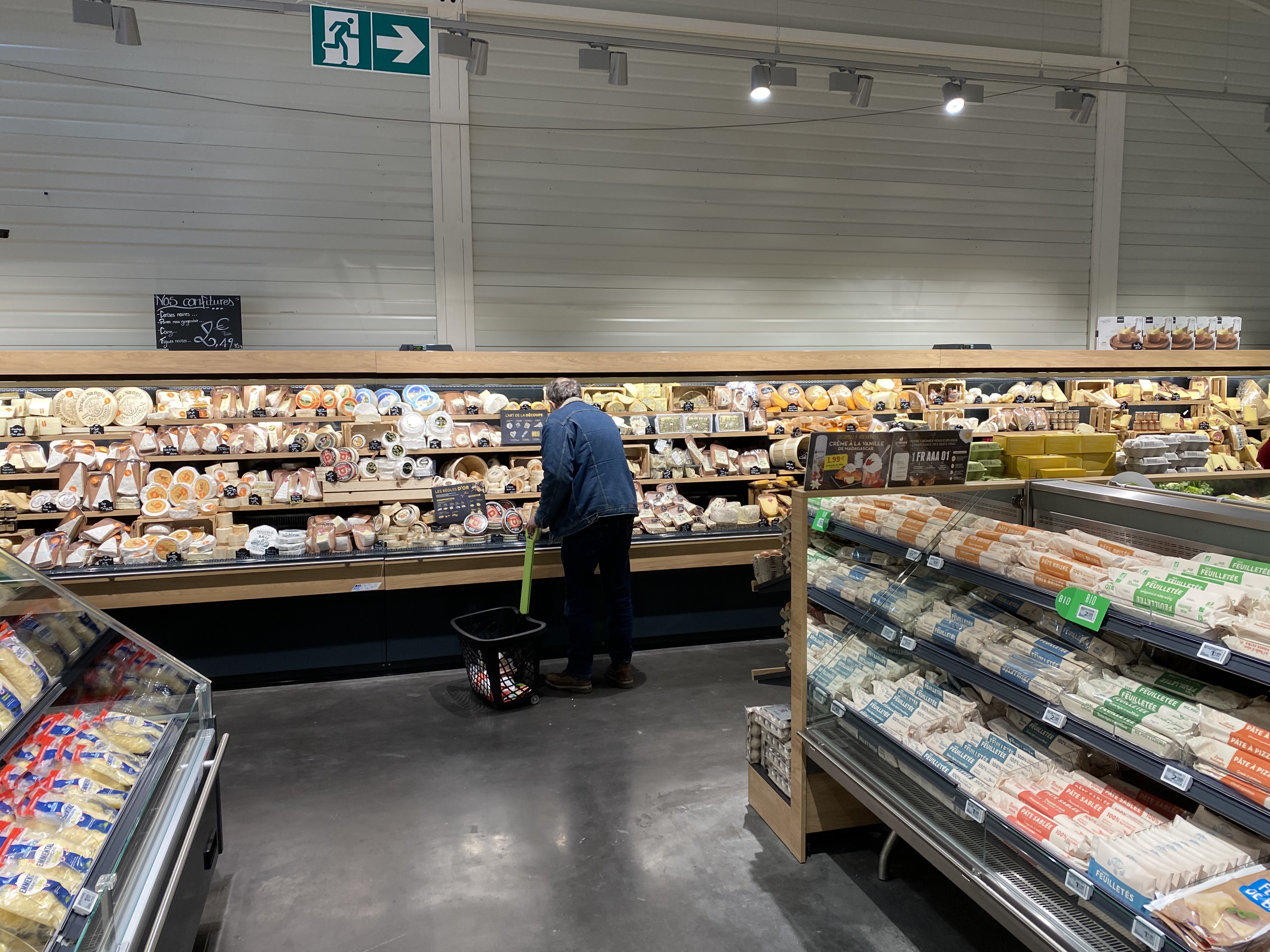 Grand Frais vend des produits frais. L'indice est dans leur nom. C'est un grand supermarché de produits frais. Il y a beaucoup de viande fraîche, de fruits de poisson, de produits laitiers et de légumes du monde entier. La sélection de fromages est excellente. Vous y trouverez du lait de Kéfir, toutes sortes de crèmes et des beurres spécialisés. Il y a aussi de la nourriture sèche : du riz, de la farine de noix, des chips et d'autres choses, et cela inclut le vin. Tout est affiché pour attirer votre regard, mais aussi pour charger facilement votre panier. La caisse est comme le supermarché standard. Allez d'abord ici, puis dans un supermarché standard pour les tablettes pour lave-vaisselle. Voilà.
