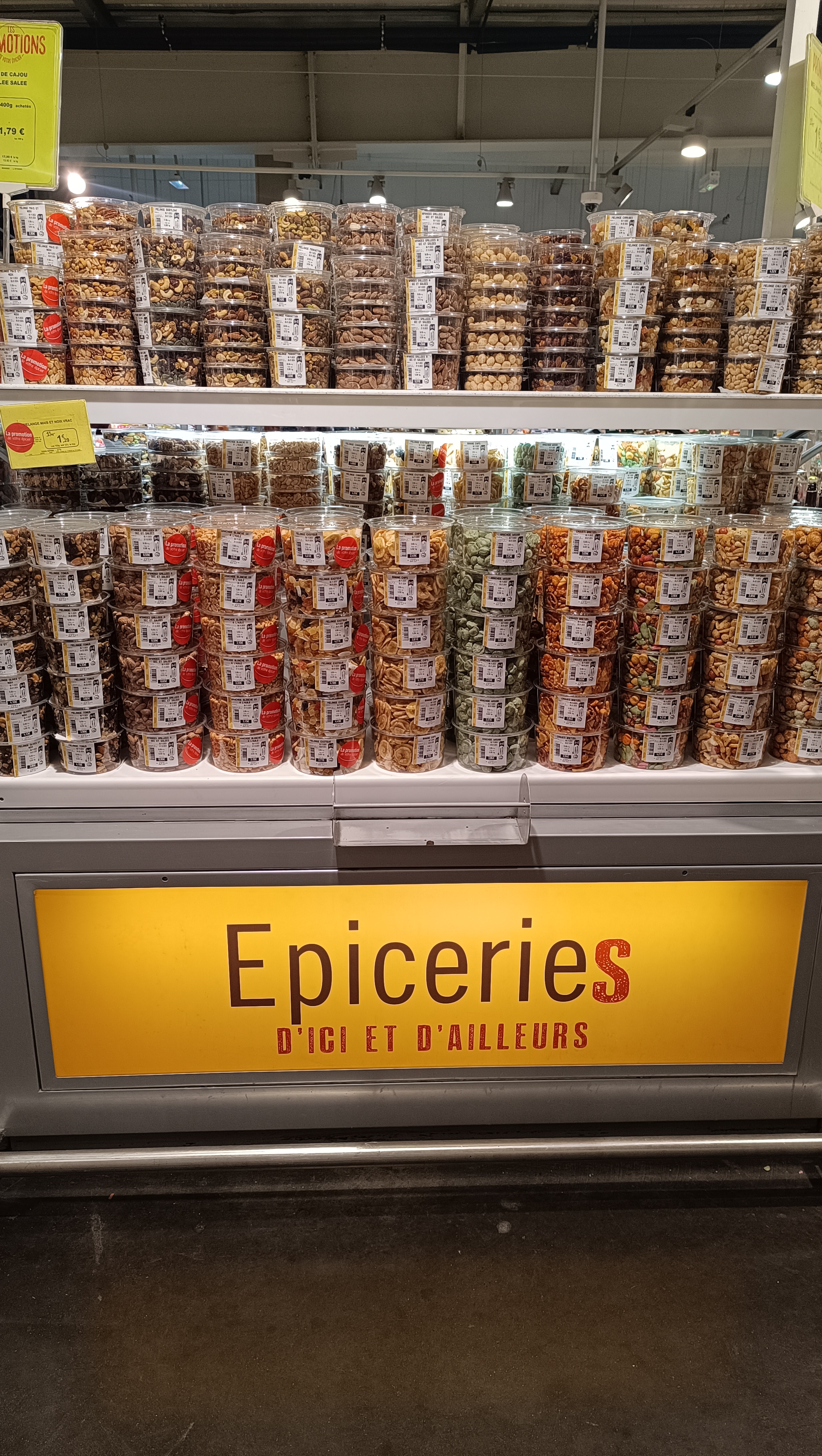 Le rayon olives pas sympa .. On ne peut pas faire des mixtes... Pas trouvé de l ail au basilic en bocal.. Ni de Wasabi dans les saveurs du monde ... Et surtout le prix des légumes en hausse...