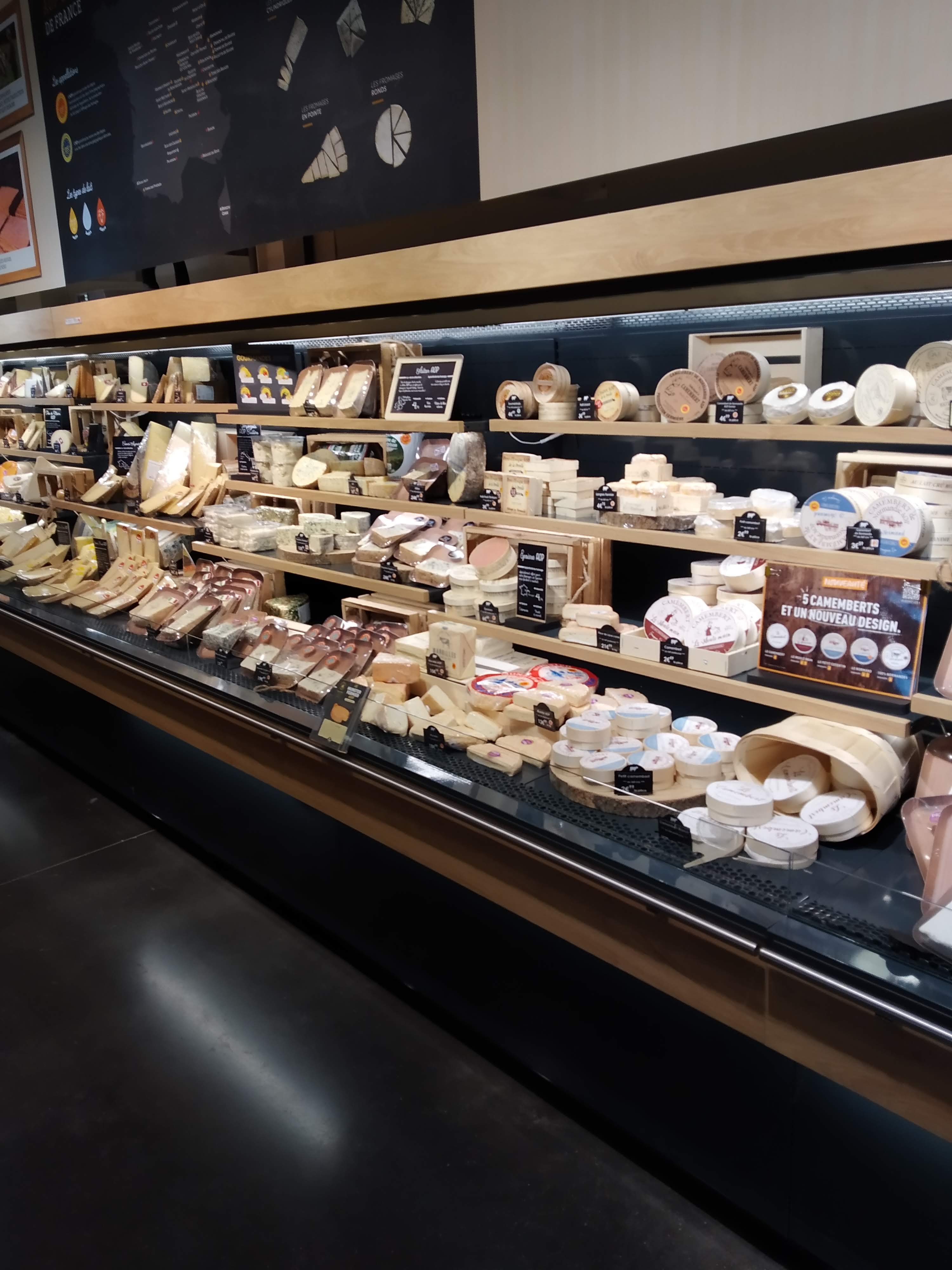 Parfait pour fromages surtout moi qui ne suis pas légumes ni fruits Le rayon laitages est très bien pourvu..poisson aussi et viande de bonne qualité Mais au quotidien il me manque l'épicerie et les conserves que je trouve a Carrefour