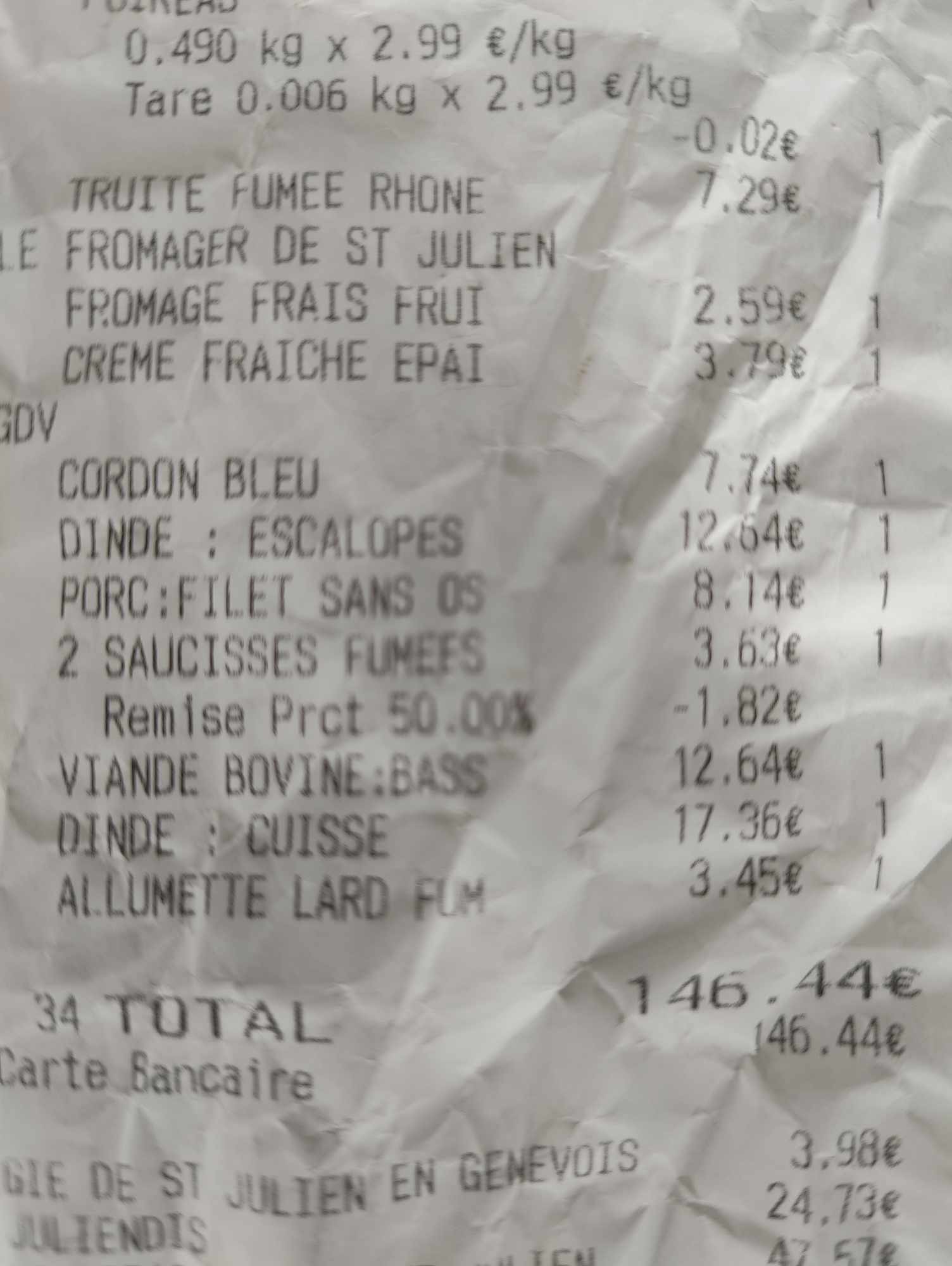 Bonjour, J'ai acheté une petite bourriche d' huitres vendredi 17 mai à 8,90 . Quand je suis rentrée chez moi je me suis aperçue qu'elle m'avait été facturée 2 fois . Je me suis présentée le 22 mai à ce magasin qui a refusé de me rembourser. j'ai subit un interrogatoire de la responsable me demandant pourquoi je n’étais pas venue plus tôt . J'ai du me justifier car je ne réside pas à st julien et que je m'y rend occasionnellement . Pour autant la responsable à refusé de me rembourser alors que les autres enseignes le font sans problème . J'ai eu l'impression que c'était moi la voleuse alors qu'il sagit d'une erreur de caissière . De ce fait je ne recommande pas ce magasin .
