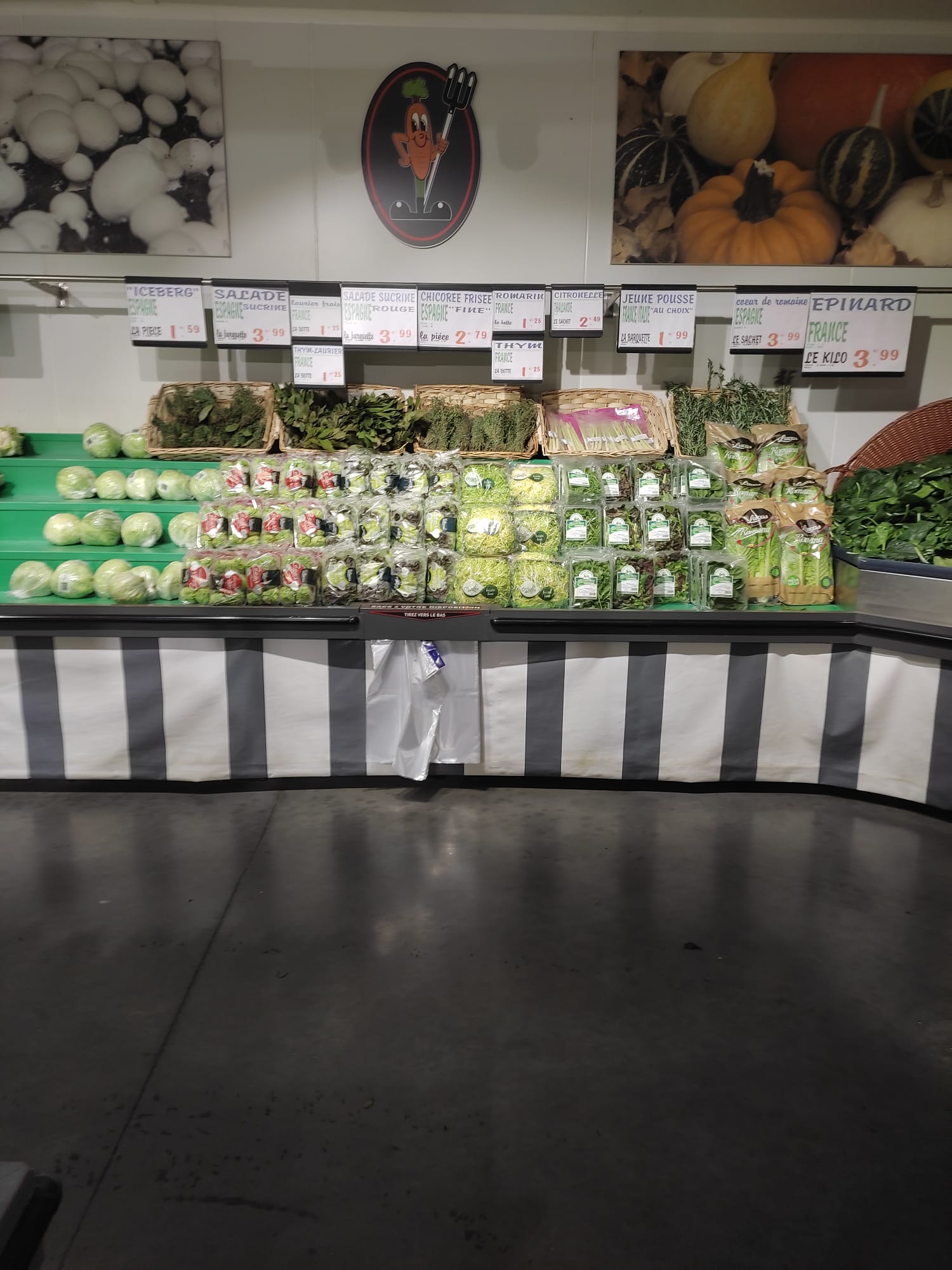 Trop de fruits étrangers. C'est beaucpup plus local chez mon petit intermarché . Honteux tous ces fruits étrangers. Ex : les poires, c'est Hollande et Argentine...alors que chez intermarché c'est des poires françaises . Le plus c est la fromagerie qui est génial et le parking