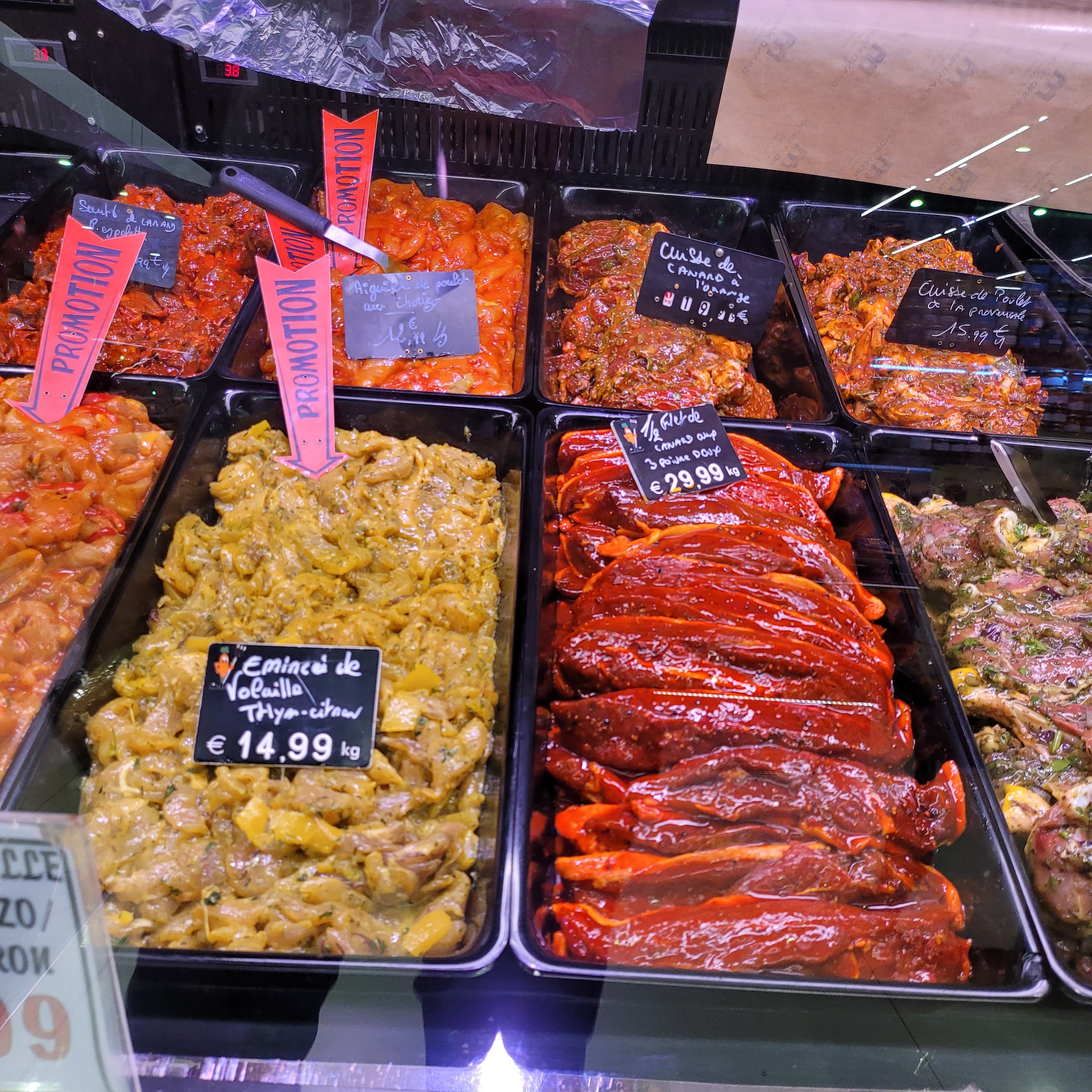 Produits de bonne qualités, mais assez cher. Exemple : 4 tranches Émincés de volailles 9,93 ; 2 aiguillettes de canard 6,26 : 1 faux filet boeuf 6,94 etc... Au 15 juillet 2019.