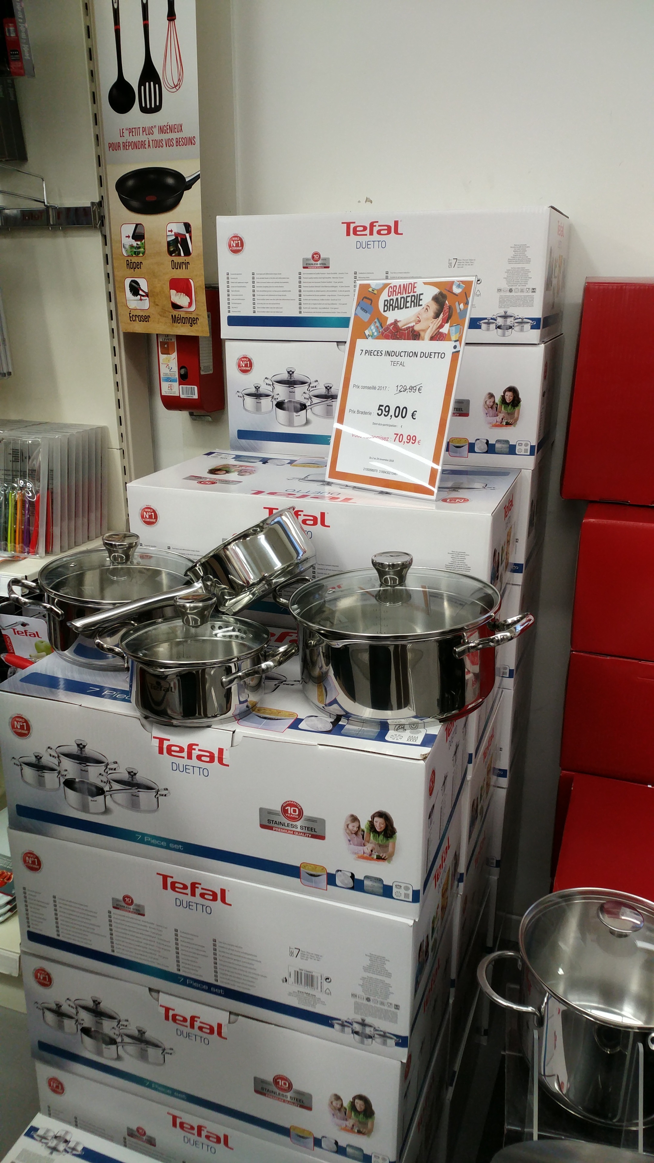 Tefal ça reste cher malgré le choix. Sinon magasin agréable personnel agréable qui vous parle sans chercher absolument à vous vendre quelque chose ce qui devient rare et c'est très agréable