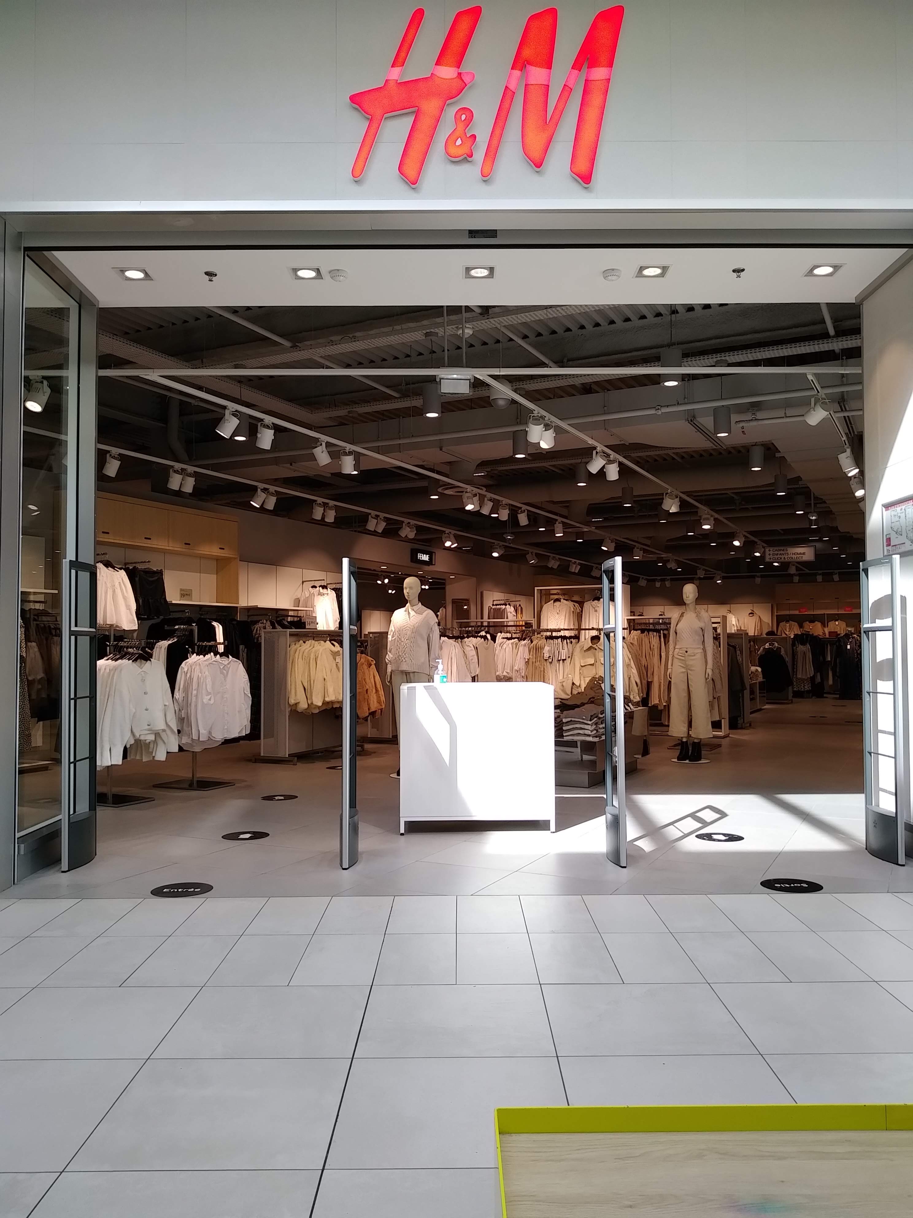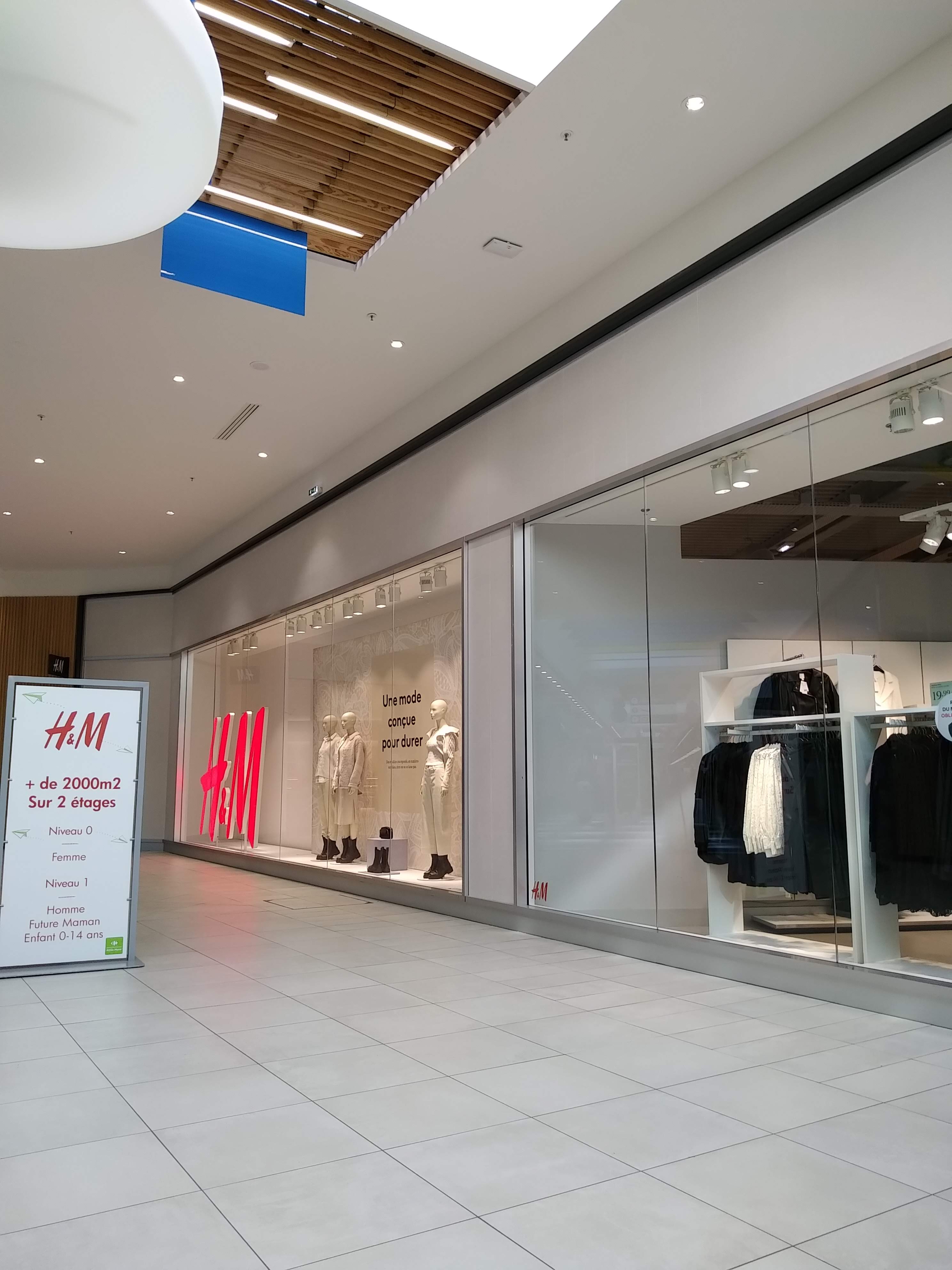 Un magasin de la chaîne suédoise de prêt à porter, situé entre les deux entrées du centre commercial Carrefour d'Athis-Mons Porte de l'Essonne, et dont la surface s'étend sur deux niveaux : 0 (rez-de-chaussée) pour la mode femmes, et 1 pour la mode hommes et enfants L'affluence étant faible en milieu de journée, c'est le moment idéal pour chiner et y faire son shopping, en toute tranquillité ... et en minimisant le risque de transmission du CoVid-19 😉. Les cabines d'essayage étant fermées, il est possible d'échanger ou de se faire rembourser dans un délai de 60 jours (2 mois), ce qui est remarquable 🙂 Le passage en caisse est rapide, l'accueil est agréable et il est possible de souscrire tout de suite au programme fidélité de H&M, en ligne, depuis son smartphone, et activer son compte pour obtenir des réductions pour des achats ultérieurs 👍👍👍👍👍