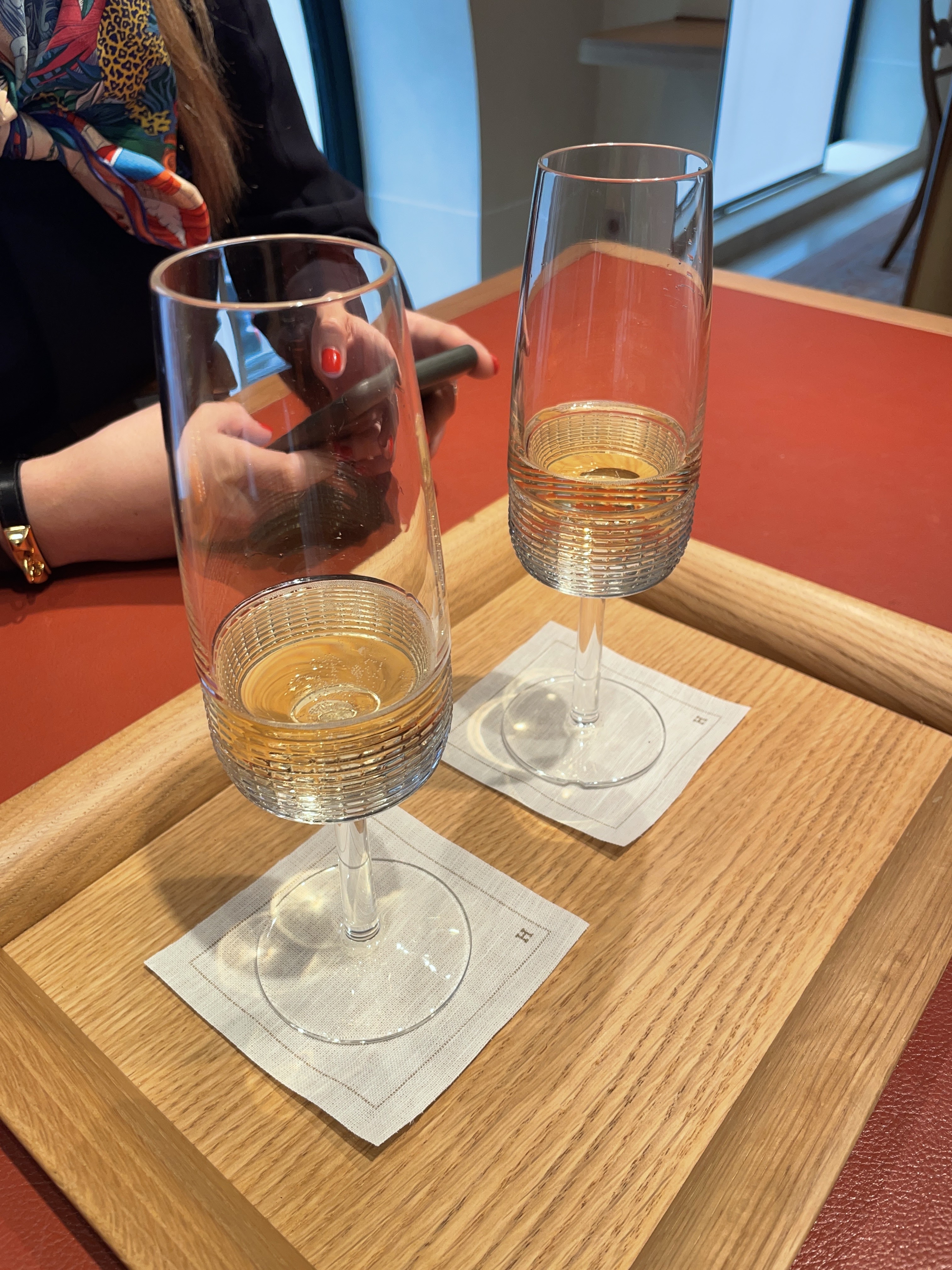 Je suis allée pour la première fois dans une boutique Hermès pour acheter un cadeau à une copine qui se marie. J’ai été très bien accueilli, je recherchais plusieurs carrés et la vendeuse a pris le soin de m’en montrer plusieurs. Étant donné que j’hésitais, elle m’a proposé un thé afin de réfléchir un peu. Elle a été très agréable et patiente avec moi et mon bébé de 5 mois ( en porte bébé). Après cet achat, j’ai demandé si je pouvais avoir accès à la maroquinerie, malheureusement elle a refusé mais ce fut tout de même une belle expérience. Je tenterai la demande de rdv par loterie même si j’ai compris qu’il y avait peu de chance d’obtenir un rdv ainsi.